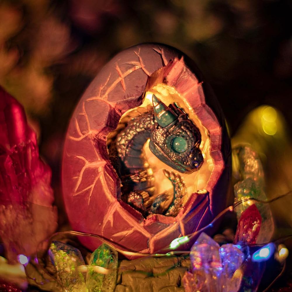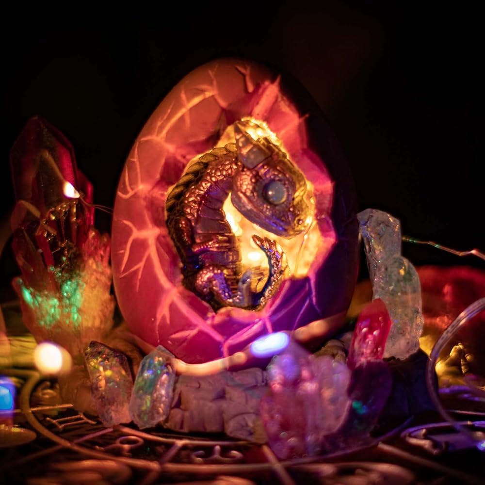 Put it on a lampholder(B09267CYNL), it will light up and glow, make a finger pedestal (made with B08V1F5F3X) to uphold the egg mold with polymer clay, stick dragon scale (made with B08V1F5F3X) on the egg to create a patterned dragon egg