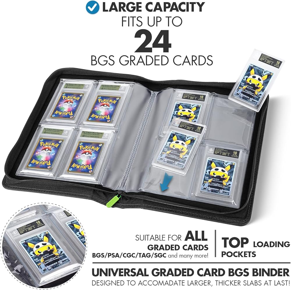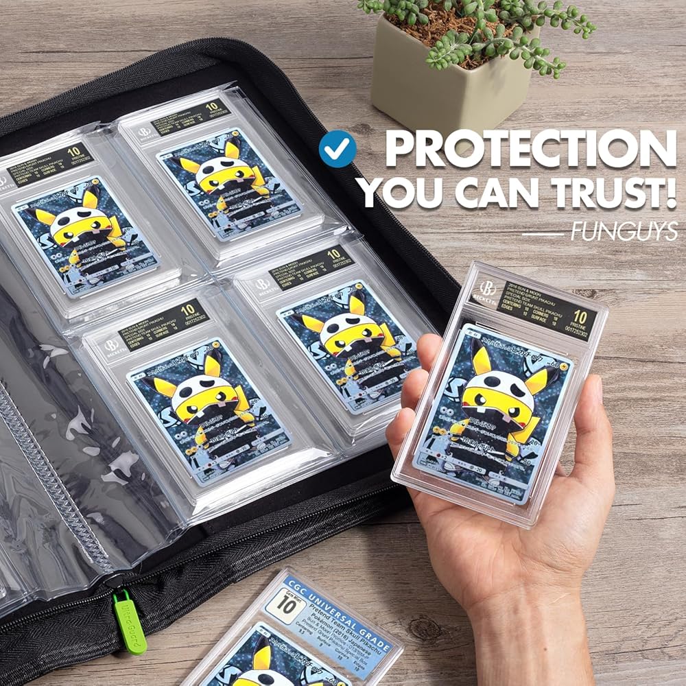 COMPATIBLE WITH - This card binder is suitable for CGC and PSA graded cards containing Pokémon cards, baseball cards, NBA basketball cards, football cards, Cards Against Humanity, 2000 Yugioh cards, UNO, phrase 10, magic the gathering, TCG cards, and much more.