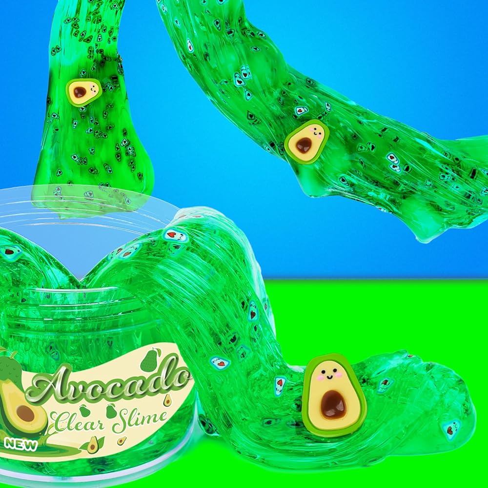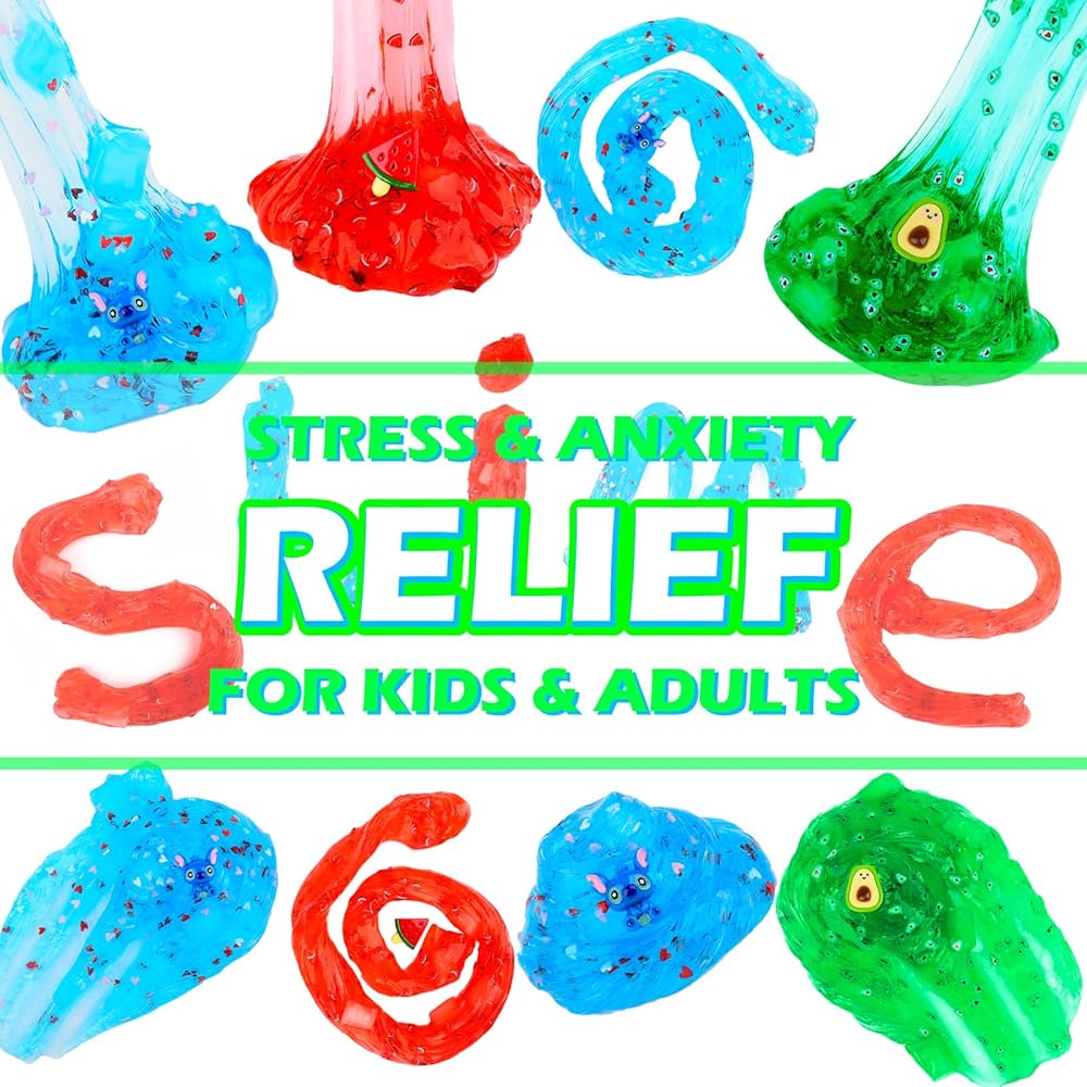Clear Slime Kit With Crunchy Crystal, Jelly Cubes, Hearts, Watermelon, Avocado, Fruit Slices - Premade Set for Girls Boys 10-12, Stress Relief Toys, Party Favors