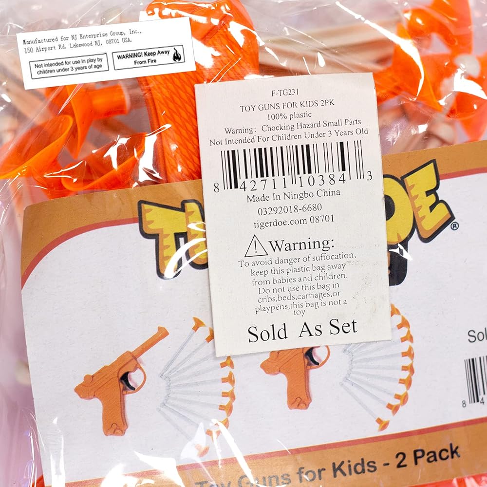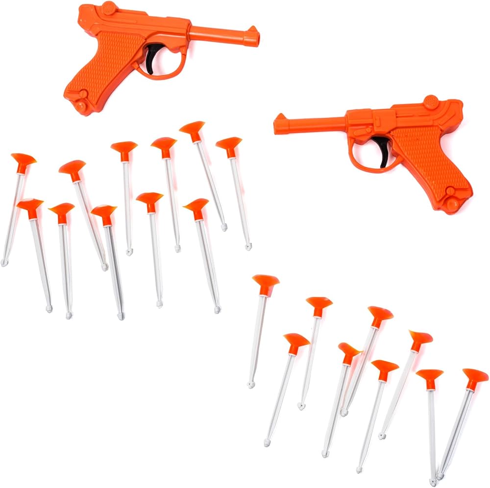 This package contains 2 red plastic dart guns with 20 darts.