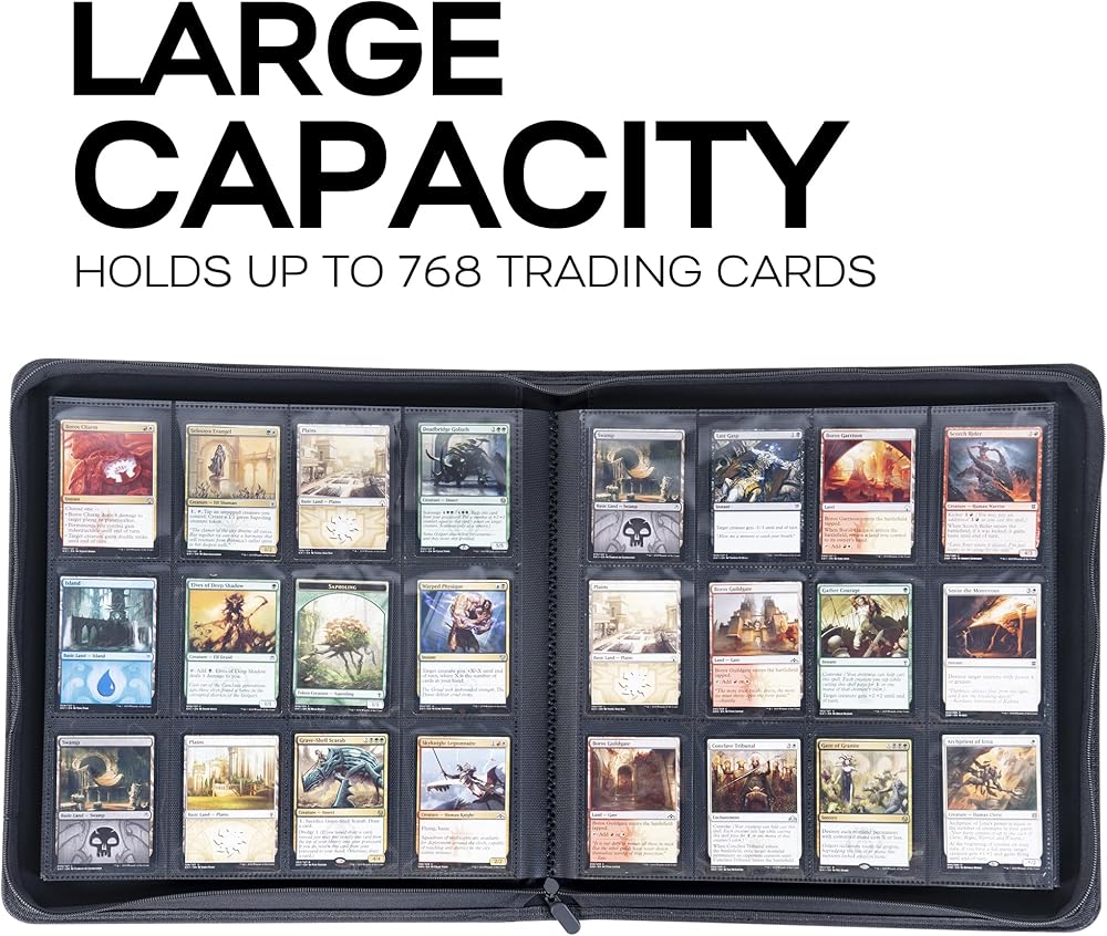 LARGE CAPACITY - Each 12 Pocket card binder with sleeves and it can holds 768 standard size cards or sleeved cards. Double-Side page design, 12 pocket per page, Provides plenty of space to keep all your cards organized,not disorganized.