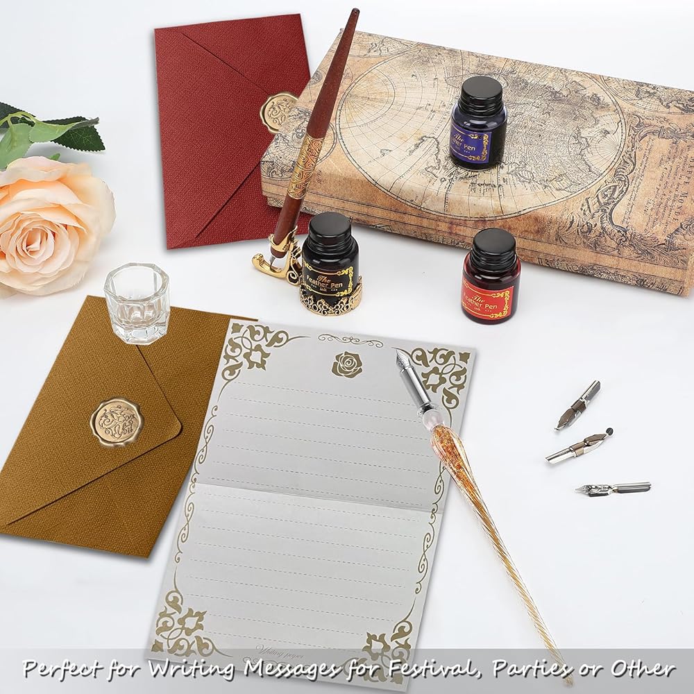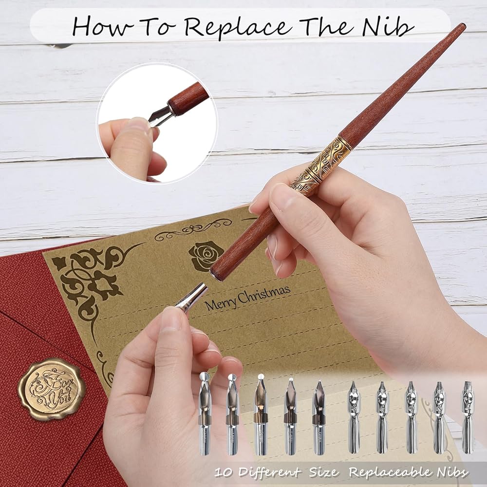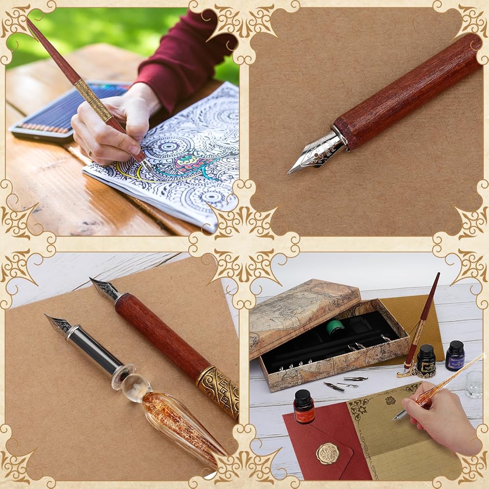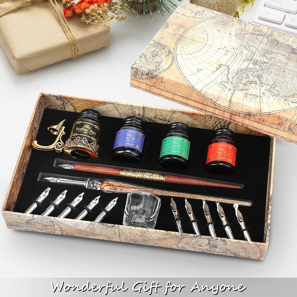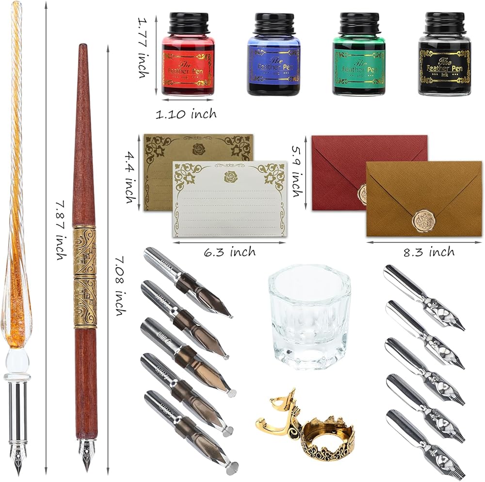 Calligraphy Pens 20 Piece Calligraphy Set for Beginners Handcrafted Glass Dip Pen Wood Calligraphy Pen with Inks, Nibs,Holder