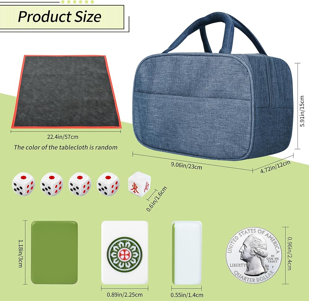【Chinese Mahjong Accessories】 A quality professional set with a 9 x 5.9 x 4.7 inches handbag (23 x 15 x 12 cm) and a 22.4" x 22.4" table cover(57 x 57cm), this set is easy to carry at 4.85 pounds (2.2 kg).