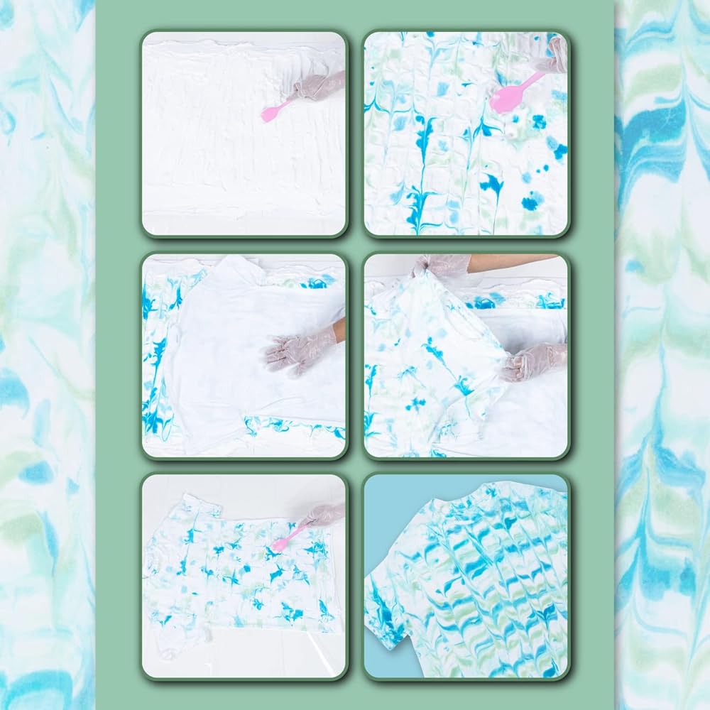 JUST ADD FOAM SHAVING CREAM: This unique tie-dye kit includes the tools, special instructions, and everything else you need for creating one-of-a-kind marbling dye patterns – including a spatula to help with marbling, 4 plastic gloves (2 pairs), and 4 bottles of One-Step Dye. Follow the instructions to use foam shaving cream as your dye base for the easiest way to create vibrant, swirling dye patterns
