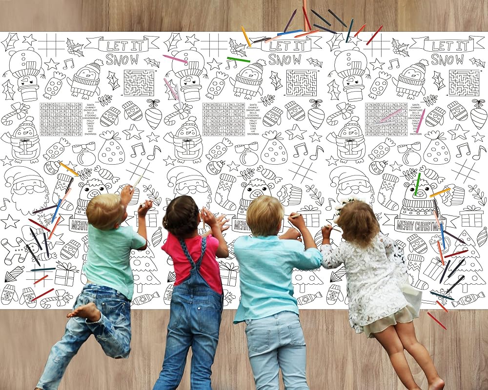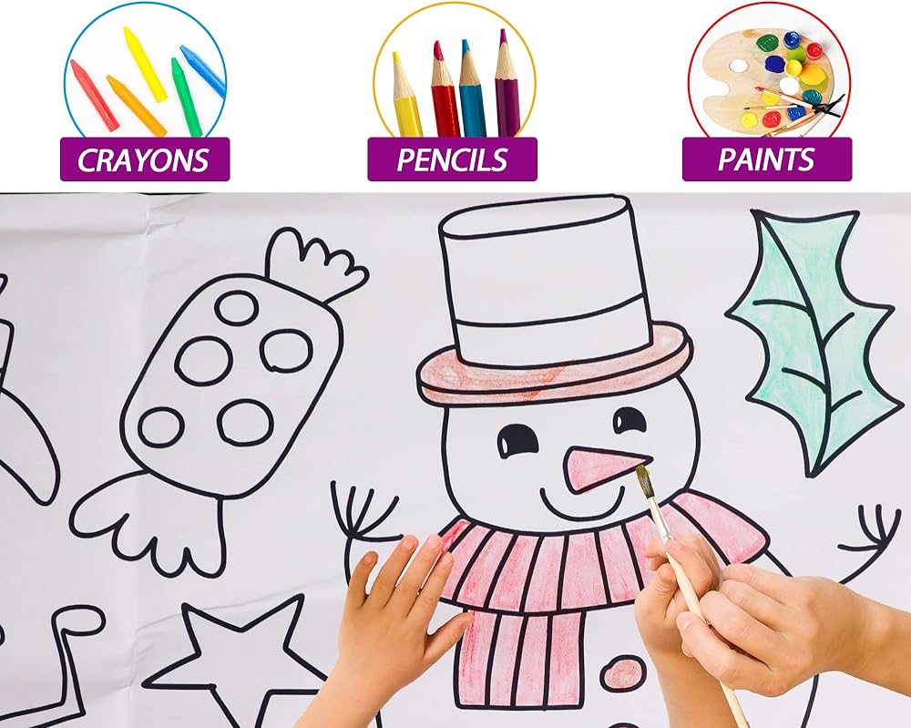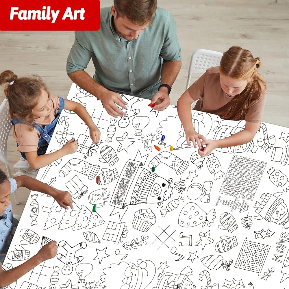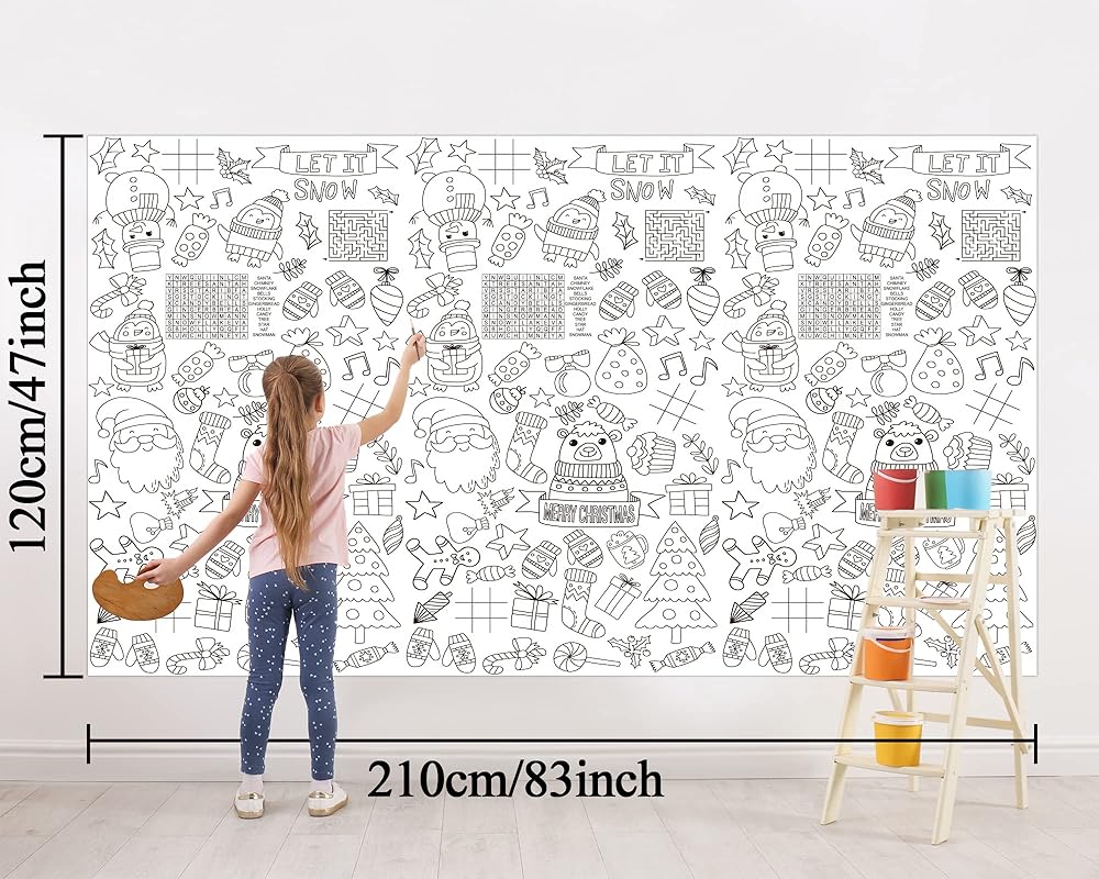 Christmas Giant Coloring Tablecloth Posters Activity 47''x 82'' for Kids, Xmas Huge Holiday Color-in Poster Paper Table Cover Arts and Crafts Great for Girls Boys Kids Preschool Kindergarten Classroom Wall Art