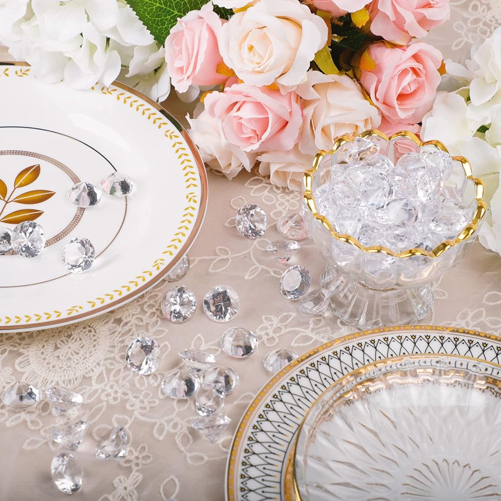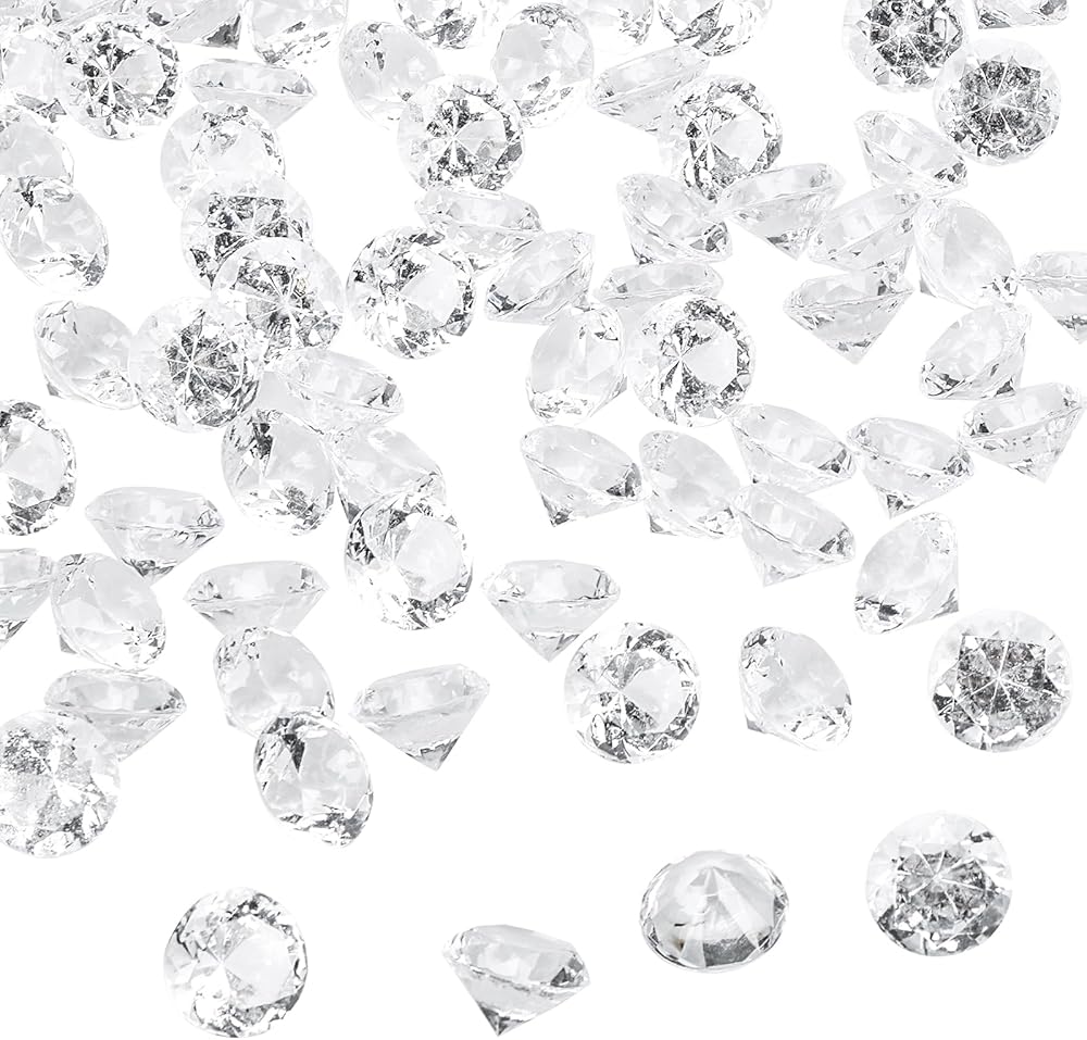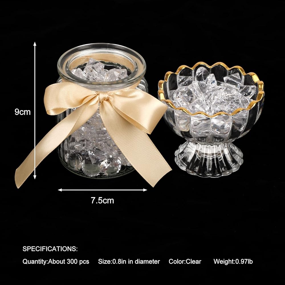 OUTUXED 300pcs 0.8inch Clear Diamonds for Crafts, Acrylic Fake Gems Crystals for Wedding Table Scatters Halloween Party Decorations with Velvet Pouch