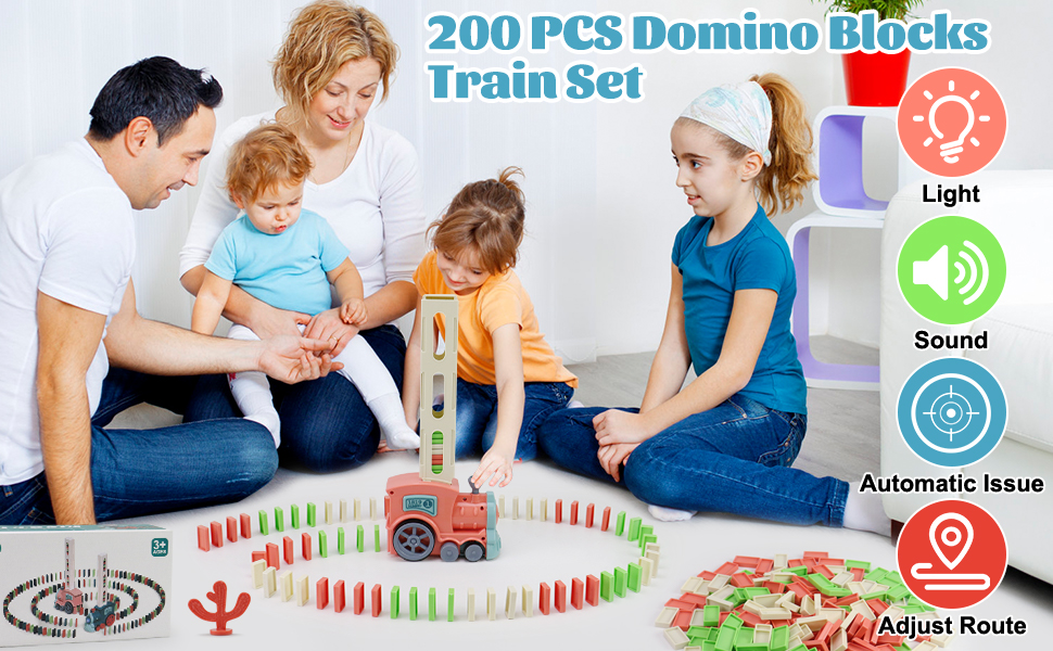 Enjoy Endless Domino Racing Fun: As the train lines up the dominoes, setting off a thrilling chain reaction. With 200 included dominoes, they can also serve as building blocks, allowing children to unleash their creativity by constructing various shapes and structures, from geometric forms to numbers and animals. The cactus spinner adds an extra dimension, and height adjustments open up even more ways to play - it's super fun for kids!