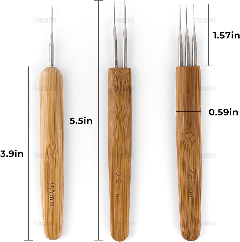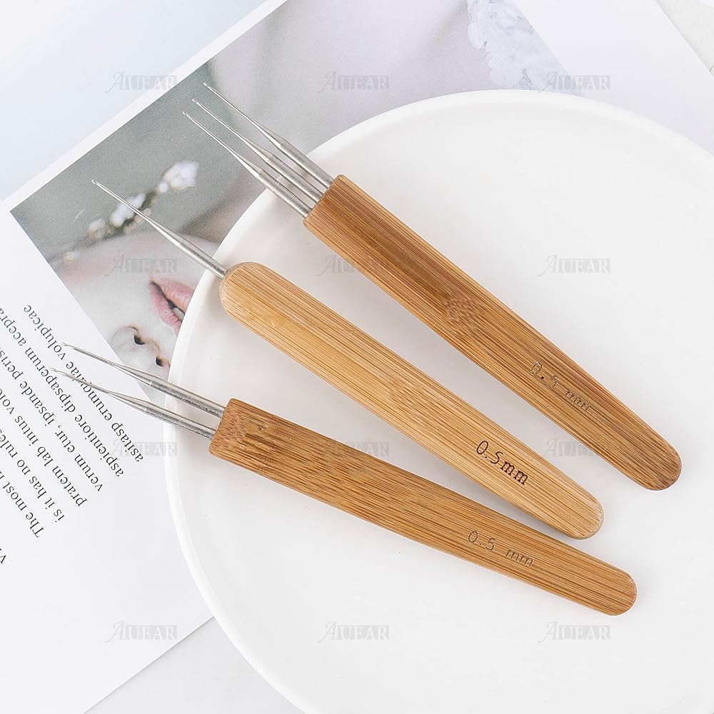 * This 0.5mm dreadlock crochet hook is made of stainless steel with a bamboo handles.