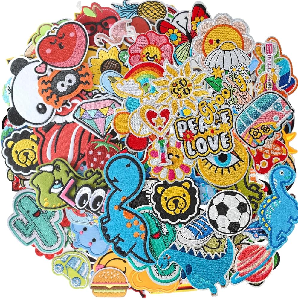100pcs Random Iron on Patches, Embroidered Iron on/Sew on Patches Applique for Clothes, Dress, Hat, Jeans, DIY Accessories