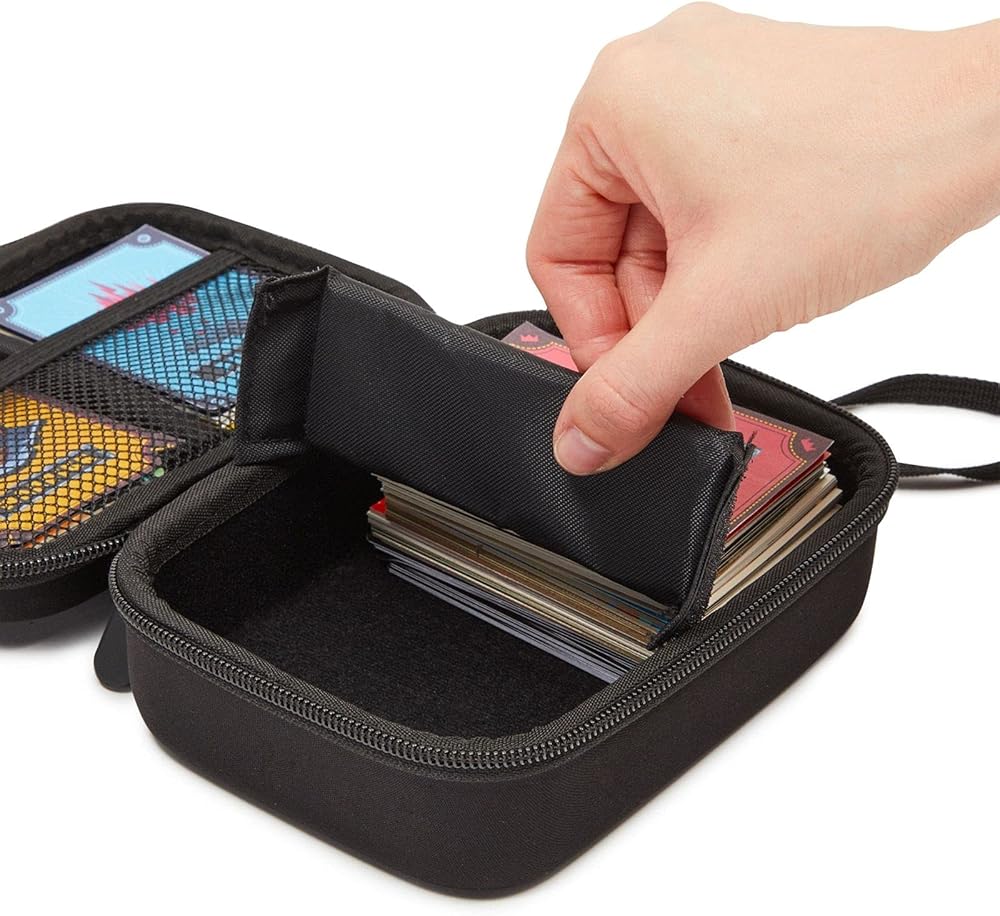 Okuna Outpost Carrying Case for 400 Cards - Black, 6.8 x 5 x 2.5 in Travel Size with Wrist Strap - Trading Card Storage Box with 2 Dividers, 4 Slots, and Space for Fabric Game Mats & Dice