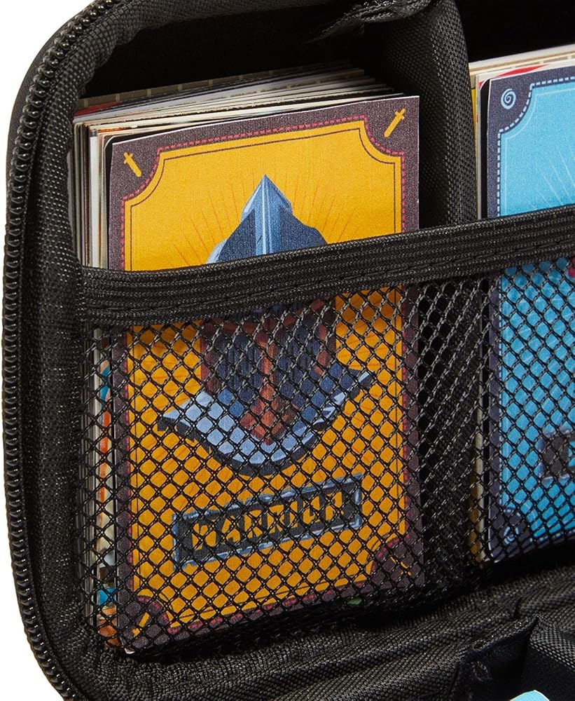 Trading Card Storage: Protect and store your collectible cards with this game card holder that features 2 dividers, 2 slots with mesh, 2 slots without mesh, and a wrist string