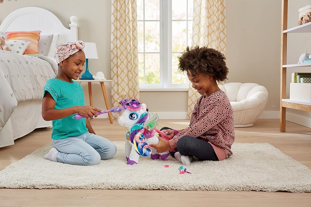 SING-ALONG WITH UNICORN: VTech's Fantasy Unicorn is a magical make-up unicorn with magic make-up brush and palette that includes a microphone to sing your favourite songs together