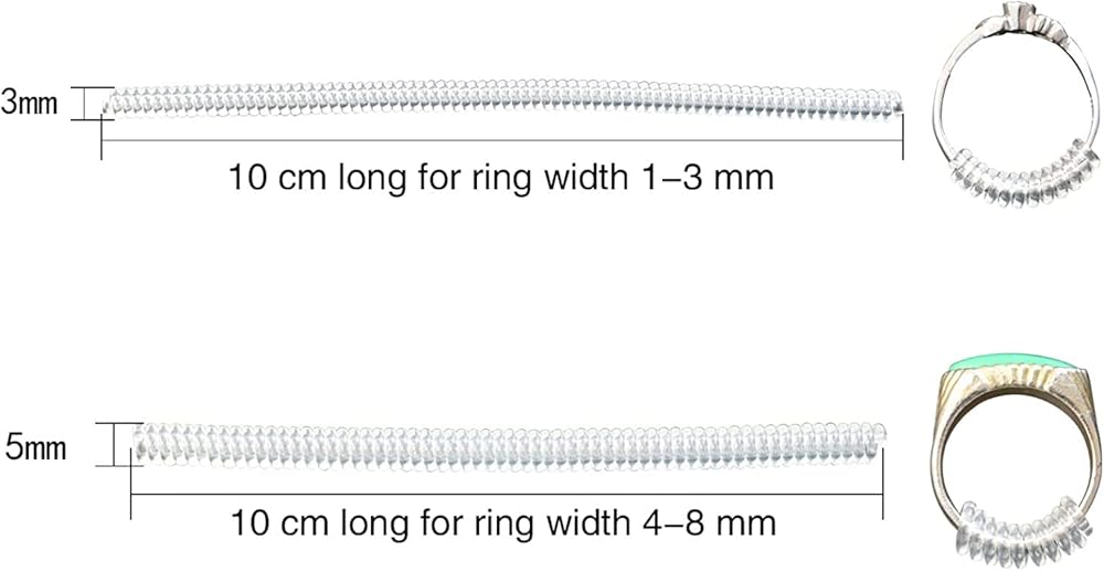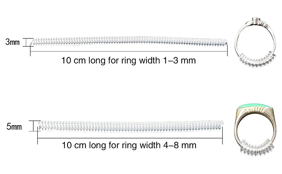 أداة ضبط مقاس الخاتم مصنوعة من مادة البولي يوريثين الحراري عالية الجودة ومتينة وناعمة ومريحة وشفافة وسهلة الاستخدام. يمكن لمخفض الخاتم أن يقلل من مقاس الخاتم بمقدار 0.5-1 مقاس الطول: 10 سم/4 انش، يمكن قص أداة ضبط مقاس الخاتم وفقًا لحجم الخاتم الخاص بك. هذا الجهاز الصغير مفيد لأنه يحل العديد من المشكلات مثل: فقدان الخواتم أو الحجم الكبير أو الخواتم الكبيرة جدًا وحتى الجمع بين المكالمات الرفيعة المتعددة في قطعة واحدة.