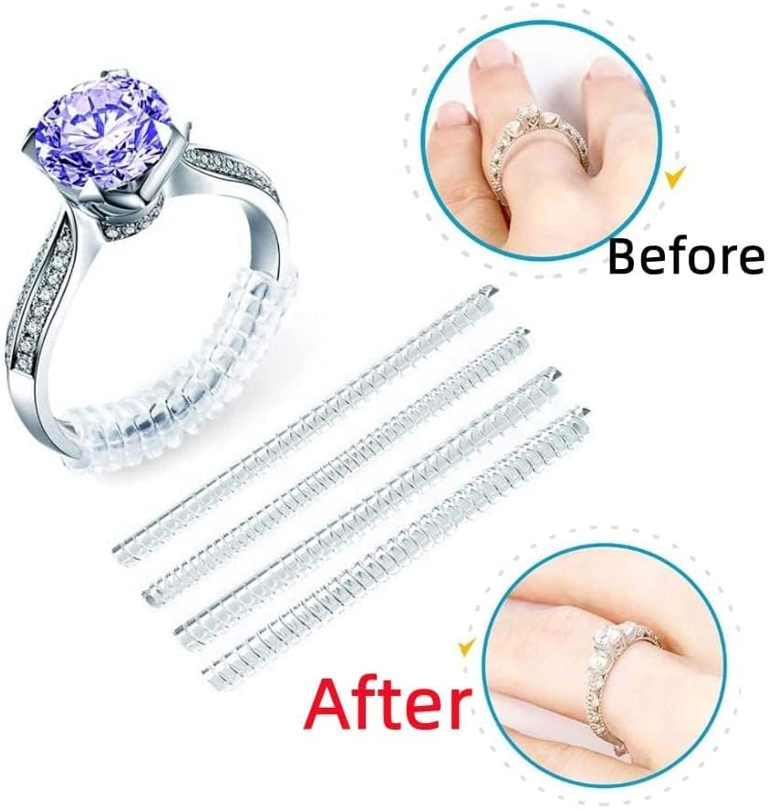 أداة ضبط الخواتم القابلة للتعديل - يمكنك تغيير حجم خواتمك الفضفاضة في المنزل دون عناء. تعمل أدوات ضبط مقاس الخاتم المصنوعة من السيليكون على حل مشكلة المقاس مع الحفاظ على مجوهراتك غير تالفة.