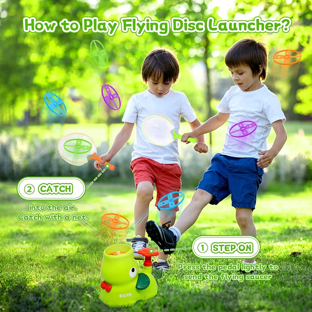 【Parent-Child Interaction Toy Set】JICUICUI flying disc launcher toy for kids ages 4-12+ is a great idea to play flying toy between parent and child, Increase communication between parents and children by playing games with children and strengthen emotional exchanges.