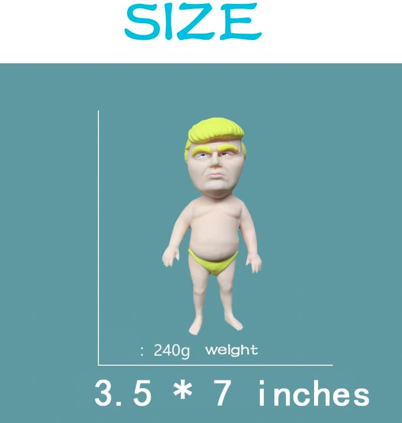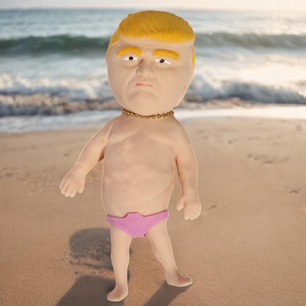 Introducing the Sand-filled Trump Swimsuit Decompression Doll, a reliable and novelty toy designed to bring endless fun and stress relief to both kids and adults. Made from safe and non-toxic TPR material, this stress squeeze ball meets international toy standards.With its comfortable and soft touch, this cute squeeze stress toy measures 7 x 3.5 inches and features a lovely shape that can be pinched and molded into different forms. Whether you want to squeeze, pull, pinch, hit, or drop it, this fidget toy allows you to unleash your creativity and create strange-shaped trump.