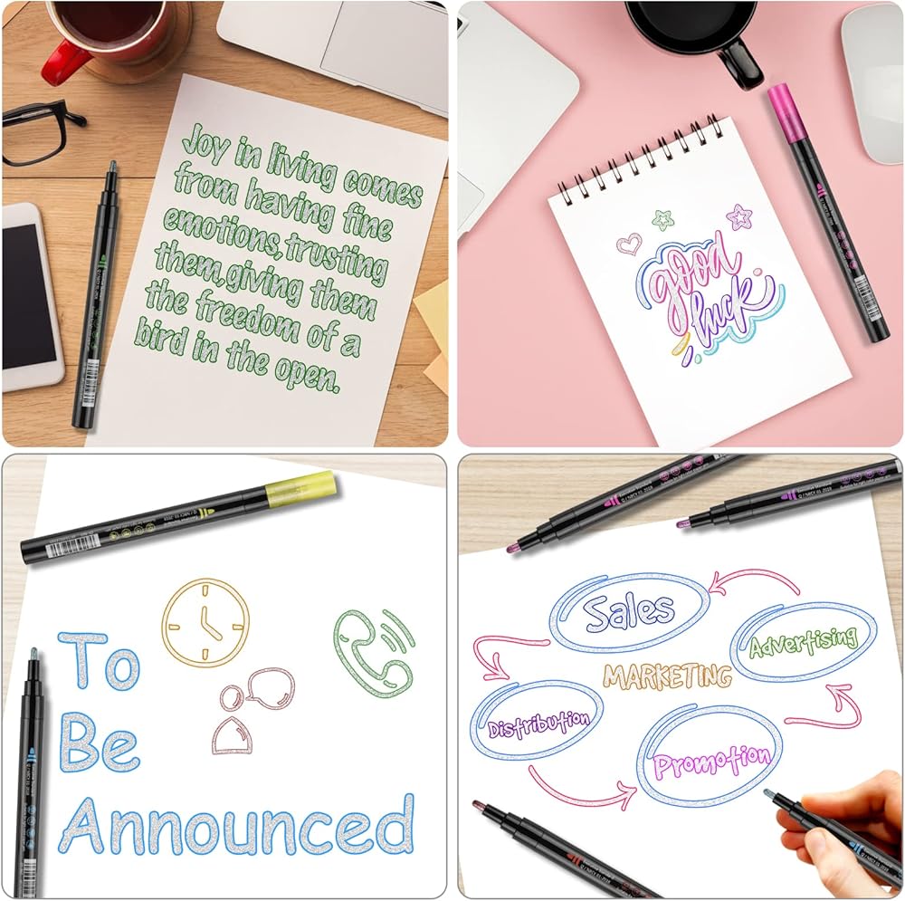 【Environmental and Safe】: Double line Metallic pens are made with water-based, opaque metallic ink. The ink is acid-free, environmentally friendly, and non-toxic. The double-line markers are suitable for all ages It is safe to use by people in the segment, whether adults, teenagers, or children. And it is recommended that children should use it under the supervision of an adult.
