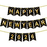 KatchOn, Gold Happy New Year Banner 2026 - Large 10 Feet, Pre - Strung | Happy New Year Backdrop, Nye Backdrop for New Years Decorations 2026 | NYE Decorations 2026, New Years Eve Party Supplies 2026