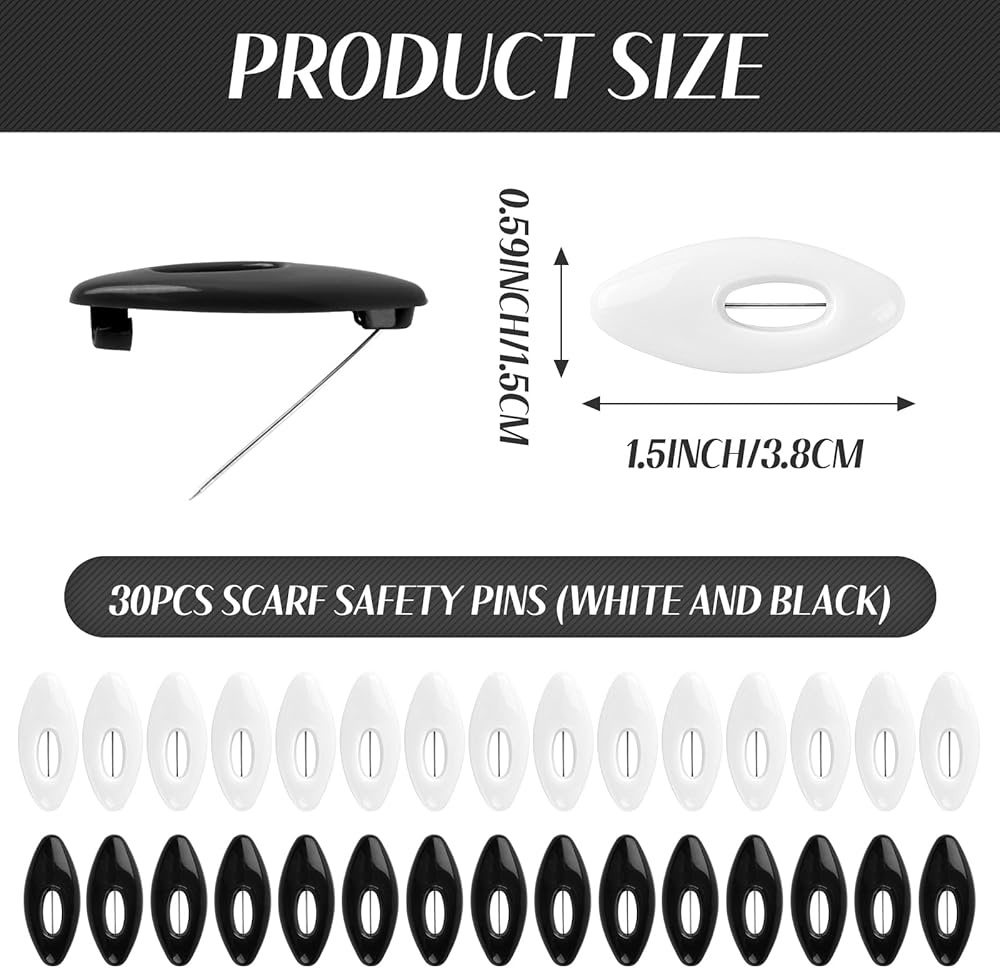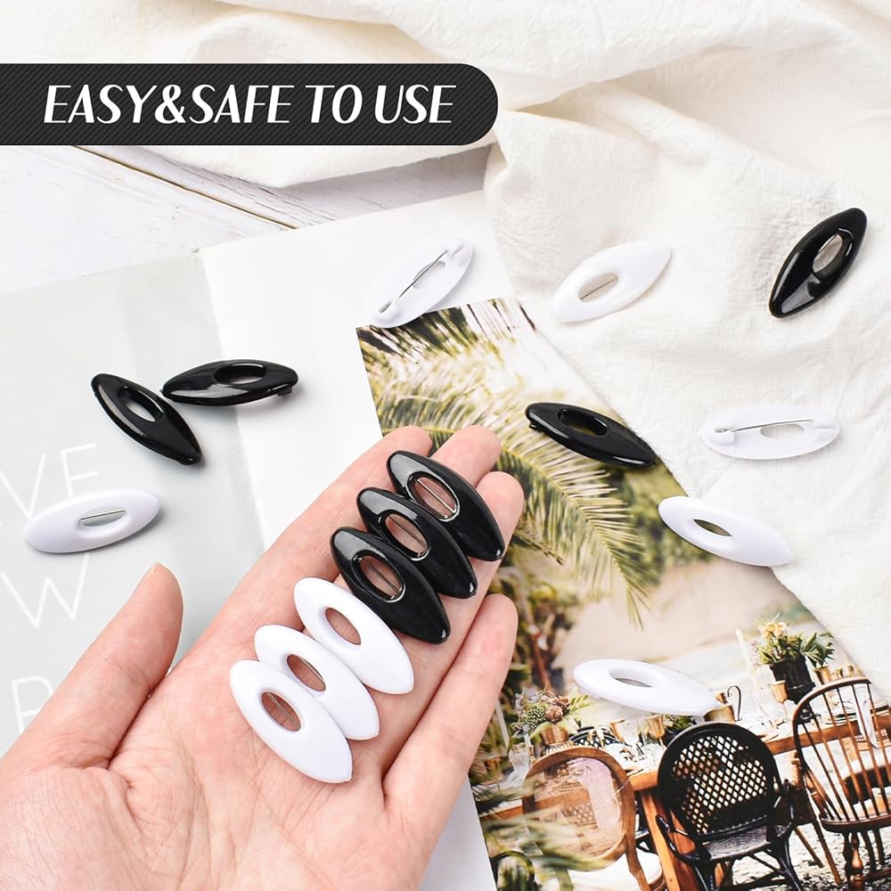 50 PCS Scarf Safety Pins, Plastic Cover Pins Oval Safety Pin for Safety Locking Clothes Brooch Pins Scarf Clips (Black and White)