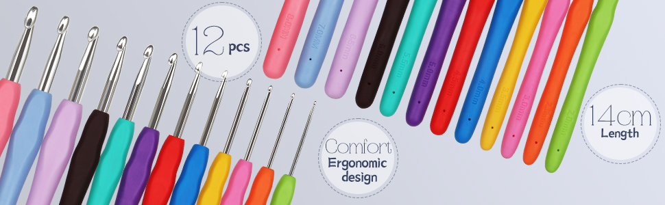 [Learn to Crochet Kits for Adults Beginner] The handles on the crochet hooks are ergonomic, fitting nicely in crafter hand, the grip easy even after prolonged use. The metal is coated, so it doesn't snag on even the cheapest of yarns. The hook set is color-coded to make for easy selection once you're familiar with the colors and sizes. The included 12 mini-skeins are buttery soft in bright colors. It's a great beginner's crochet set to learn how to do blanket, amigurumi and granny squares