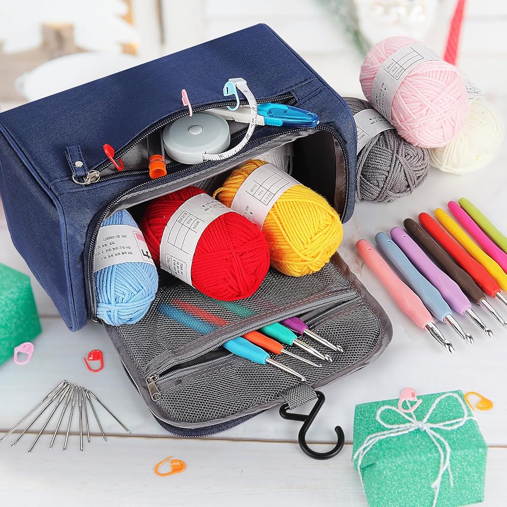 [It Comes with a Full-Size Crochet Travel and Storage Bag] The REESSY Travel Crochet Bag with 1 mesh pocket with zipper, and front pocket with zipper, the stitching nice and tight, and a smooth-flowing zipper, plenty of storage and compartments inside to hold all the goodies.This would be a great case to carry if you're working on a small project. If you are interested in buying a starter kit, or you just want to add to your existing collection, this kit is a good choice