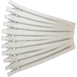 WHAT YOU GET - Set of 12 white YKK brand metal zippers in a silver aluminum finish. These are number 5 closed end zippers.