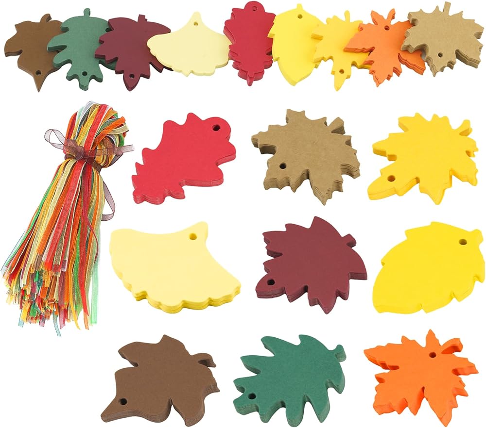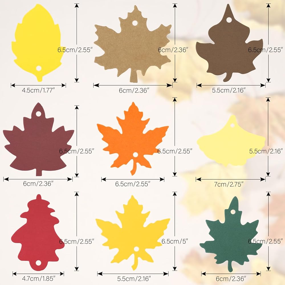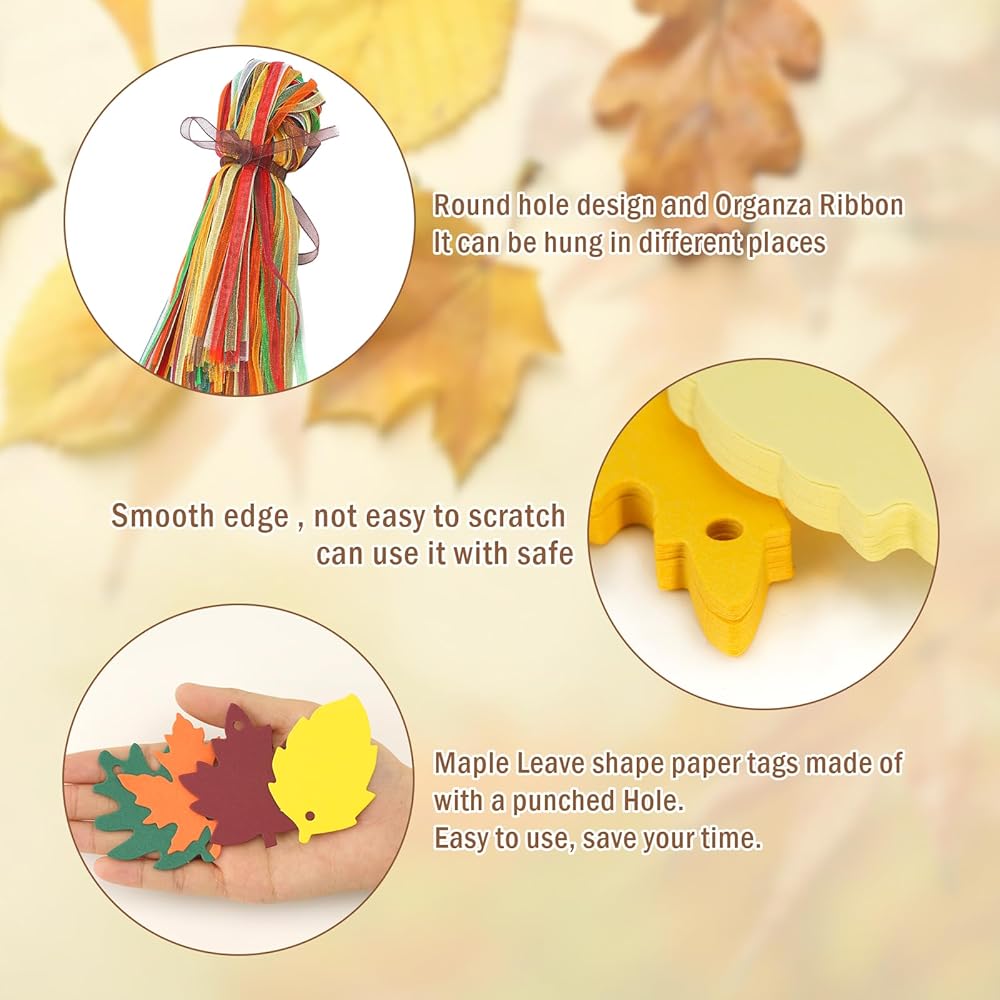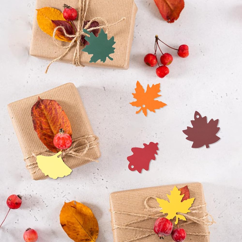 【Easy to use tags】Paper Leaves have pre-cut holes, and you can put ribbons directly through the holes, and then use the ribbons to tie them to the items you want to decorate. You can decorate gift wrapping, fall party favor, Thanksgiving gifts.