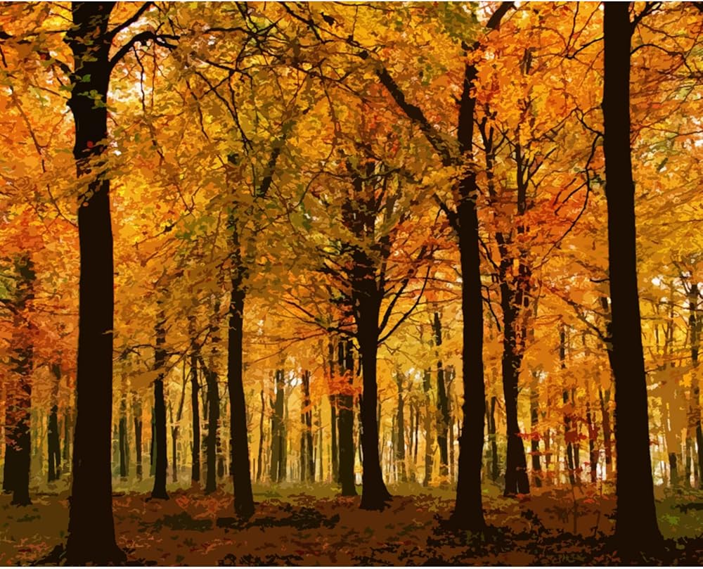 Autumn Forest Painting Paint by Number Kits 16 x 20 inch Tropical Beech Tree Canvas DIY Yellow Leaves Painting for Kids Adults Beginner with Brushes and Mountain Acrylic Art Afro Gift(Without Frame)