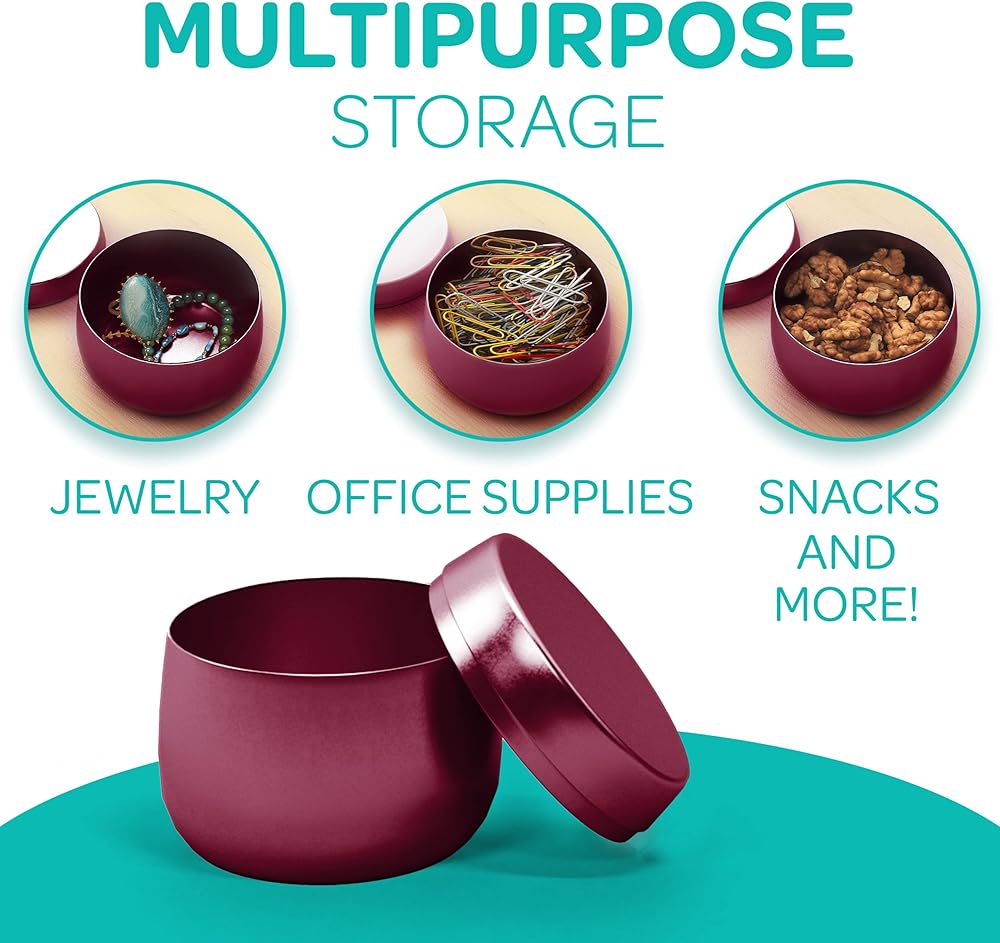 MULTIPURPOSE DECOR - After the holidays, these Christmas candle tins will be a joy to keep. We love using them as candle jars, but our tin cans with lids may be used for other things. With these tin cans, you can now store candy, buttons, jewelry, craft supplies, or many small items in plain sight and easy reach.
