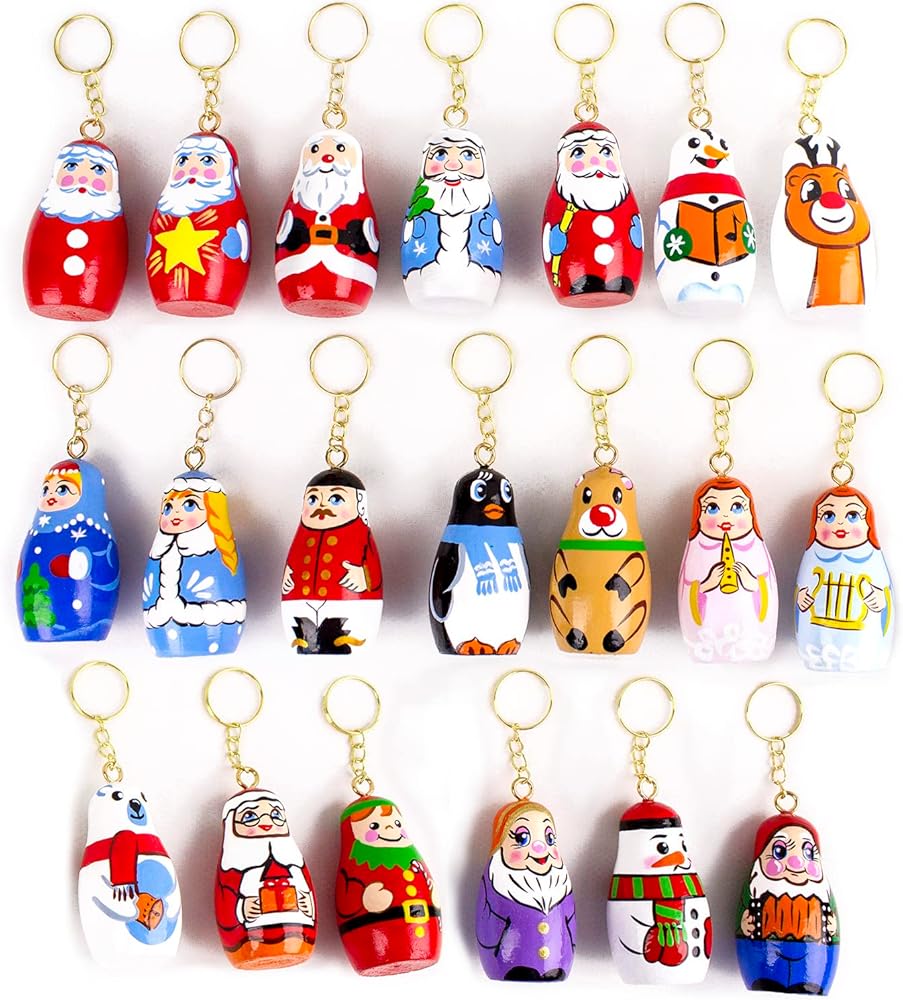 AEVVV Christmas Nesting Dolls Keychains Set 20 pcs - Matryoshka Key Chain - Snowman Santa Nesting Dolls Xmas
