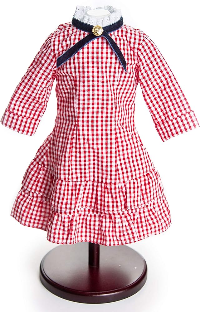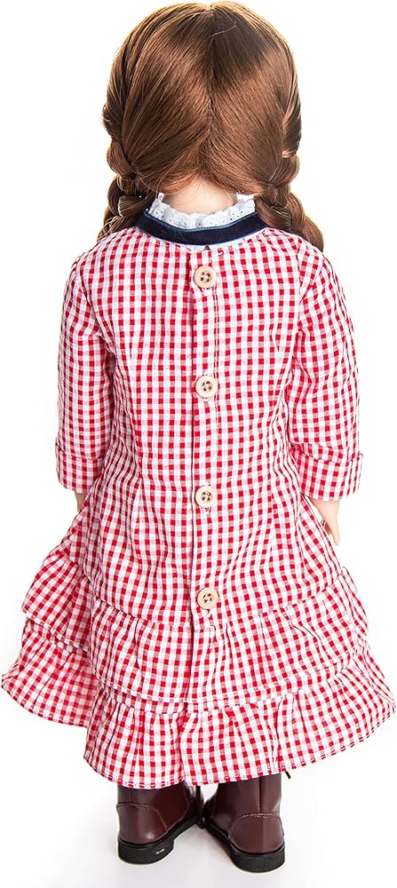 The Queen's Treasures 18 Inch Doll Clothes, Little House on The Prairie Authentic Laura Ingalls Red Check Dress Outfit, Compatible for Use with American Girl Dolls