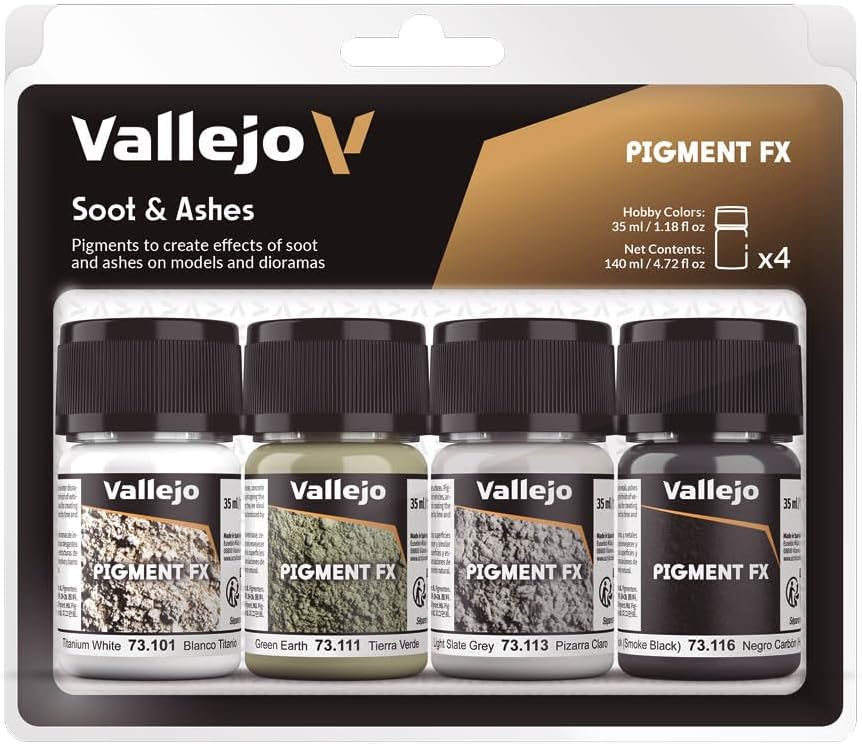 Vallejo - Pigment FX Soot & Ashes Effect | Wide Range of Effects Caused by the Climate and Geographic Conditions | Contains 4 Bottles x 35 ml (1.18 fl.oz.)