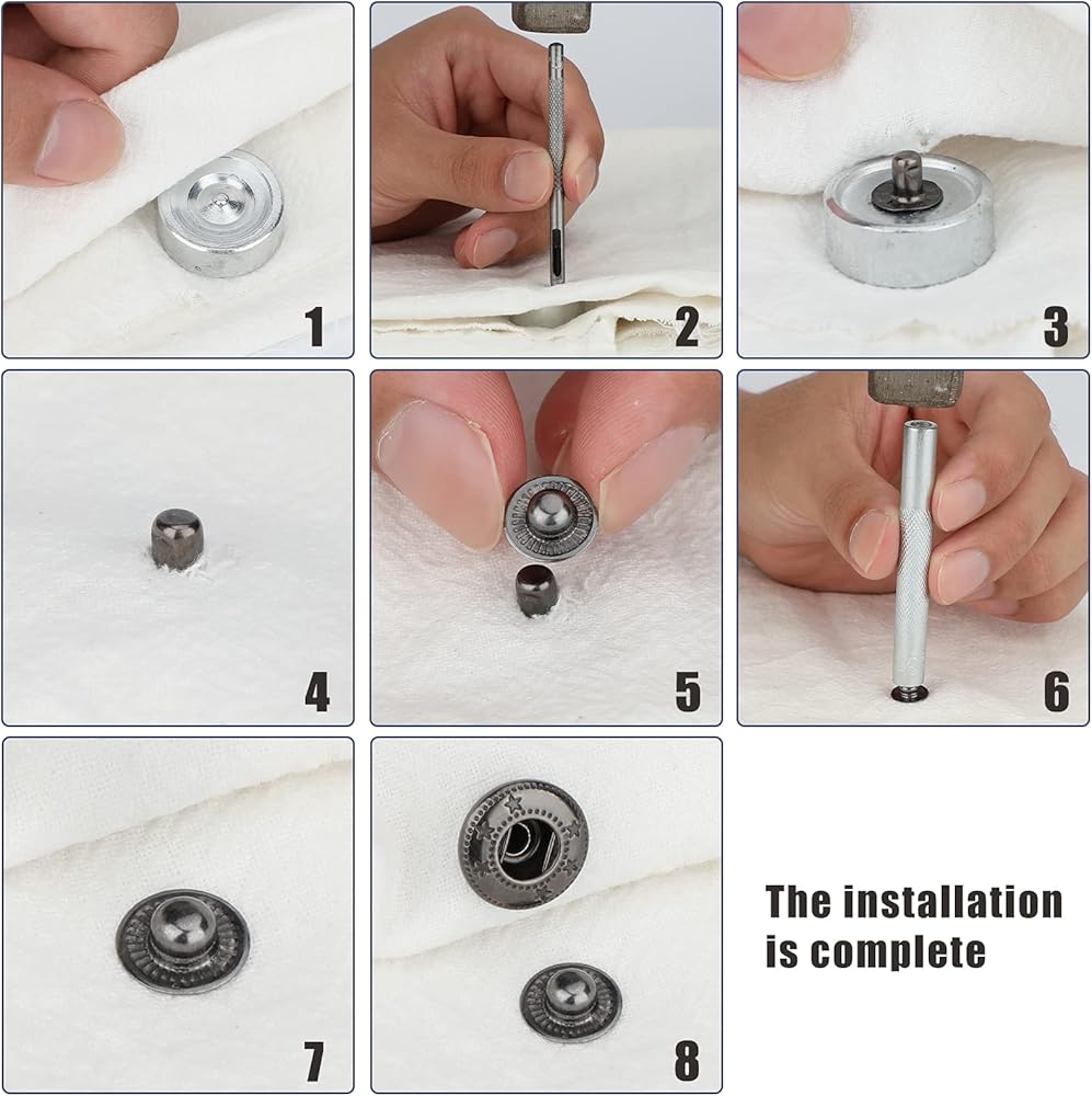 【Easy to Use】 Following the method of operation on the product details page, it's very easy for you to install the snap buttons, and it won't take up too much of your time. These snap fasteners are much suitable for thin clothes.