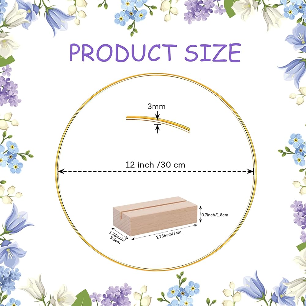【High-quality Materials】The round metal hoop is made of sturdy metal, each thickness is 3mm, which is strong and not easy to break or deform. The surface is glazed to prevent oxidation and rust. The wooden stand is made of natural pine wood with a smooth surface