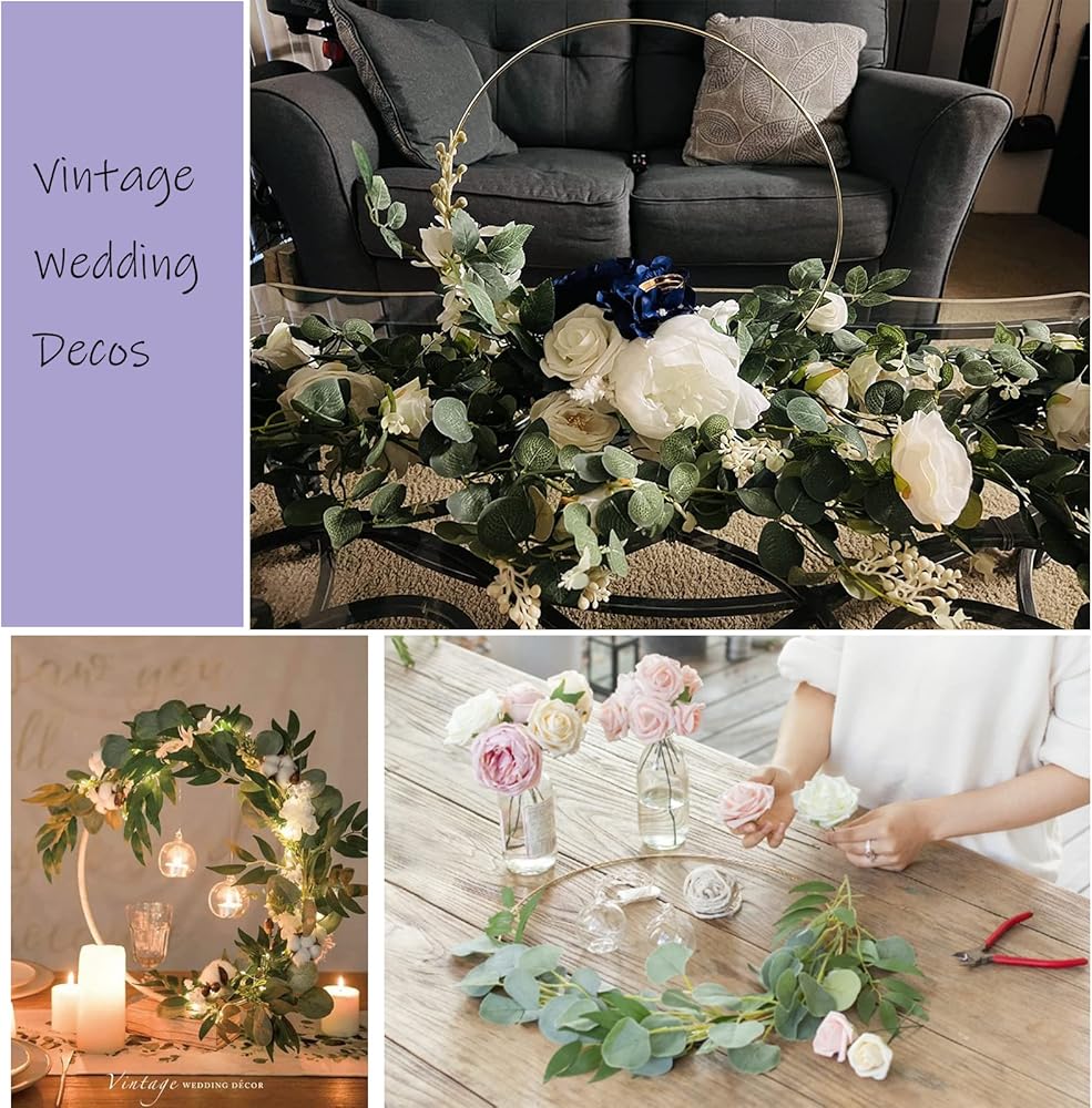 【Wide Applications】 The metal hoop table centerpieces suitable for you DIY decor projects, you can open your mind to make elegant and pretty table decorations. Perfect for weddings decor, Christmas door wreath, parties, anniversary, baby showers, or home decorations, creating a romantic and warm atmosphere, enjoy happy life