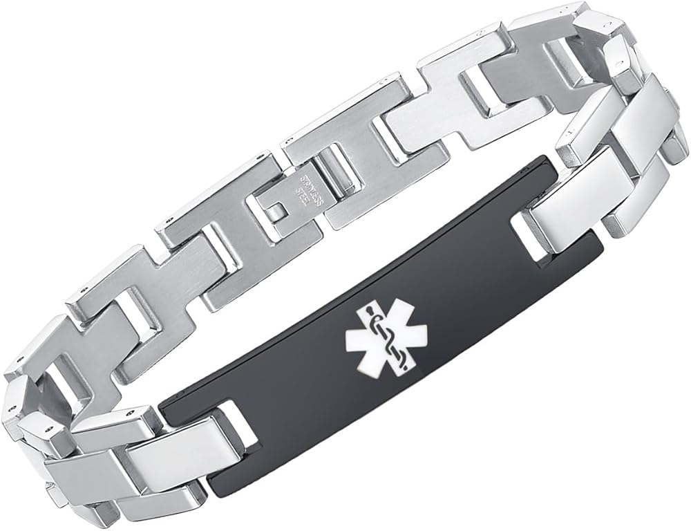 Free engraving your Medical condition on the front and back of bracelet,Laser engraving make the font clear and easy to read. click on the "Customize Now" button on the right to complete the editing. Please double check your spelling before buying, make sure it is correct!