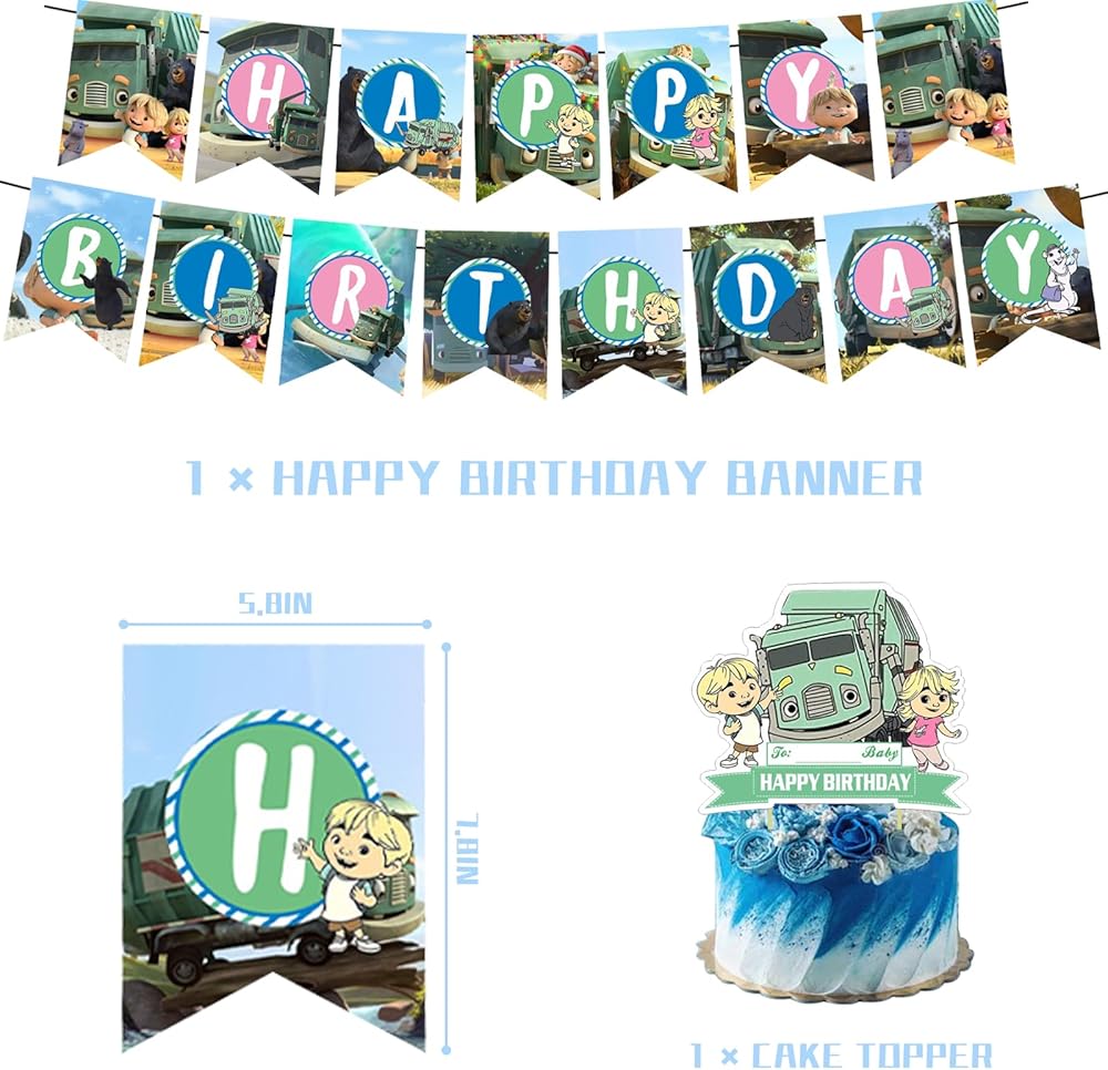 PACKAGE INCLUDING: Look No Further! 4-IN-1.18Pcs Trash Truck Balloons,Happy Birthday Banner and 12 Cake Toppers.Our Complete Set of Trash Truck Birthday Party Supplies Will Add Amazing to You, Your Family And Friends
