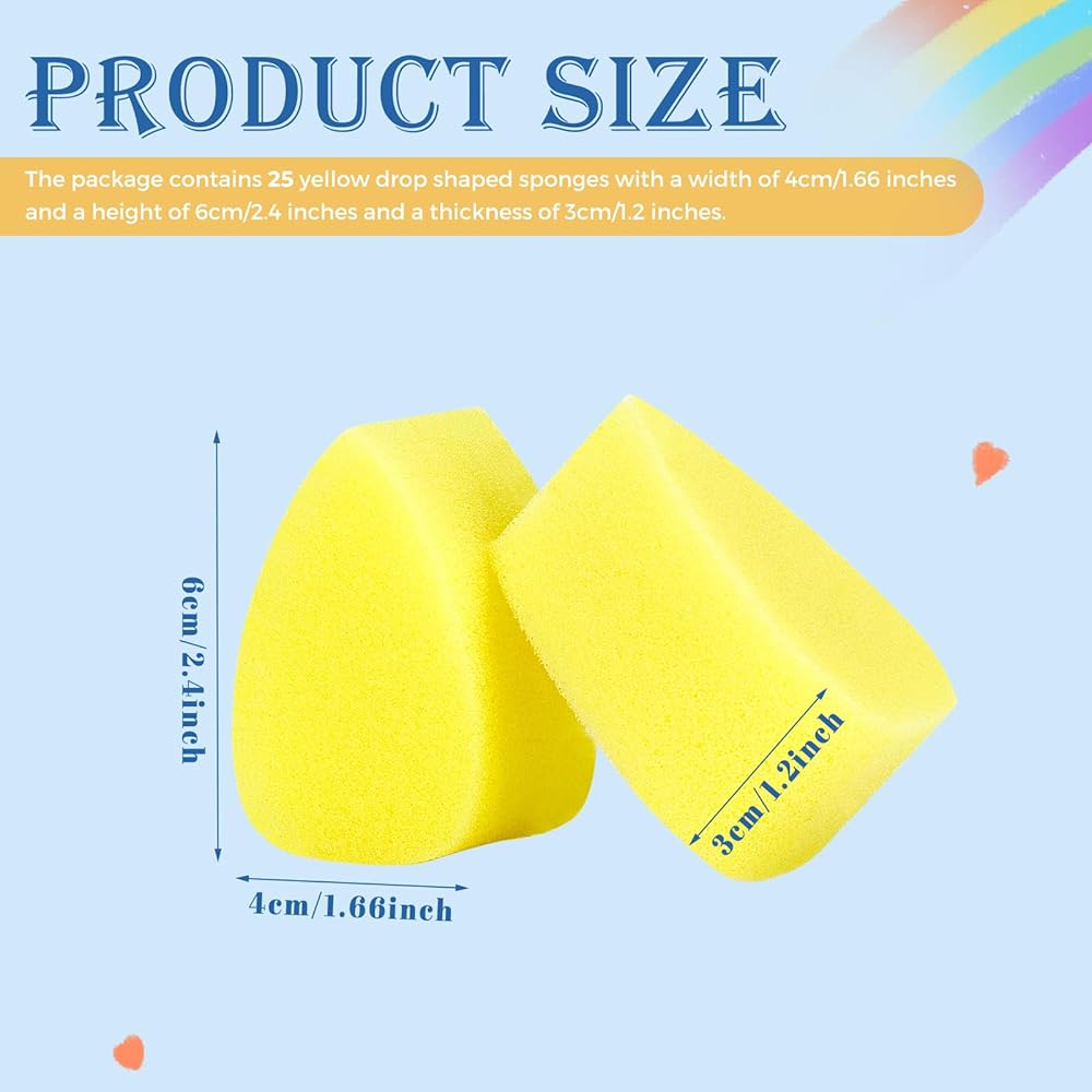 Sufficient quantity: The package contains 25 yellow water drop shaped sponges for different painting and coloring needs.