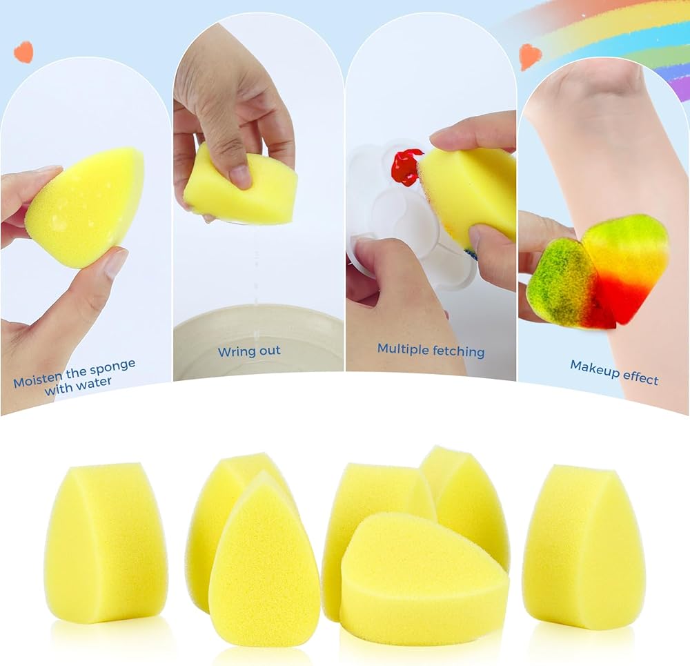 A wide range of applications: Our face painting petal sponges are not only suitable for face painting and body painting, but also for makeup, watercolor, handicrafts, pottery, clay and can be colored anywhere you want.