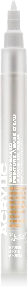 The Montana ACRYLIC Marker Extra Fine is a high quality water based paint marker featuring a matte finish. Highly pigmented paint is light-fast, high covering, water-resistant and abrasion proof allowing application to almost any surface (including canvas, wood, metal, walls and glass). Extra Fine tip is perfect for intricate patterns and finishing touches. This marker is a multi-purpose tool and a staple for muralists, graffiti artists, customizers, DIY entrepreneurs and students alike.