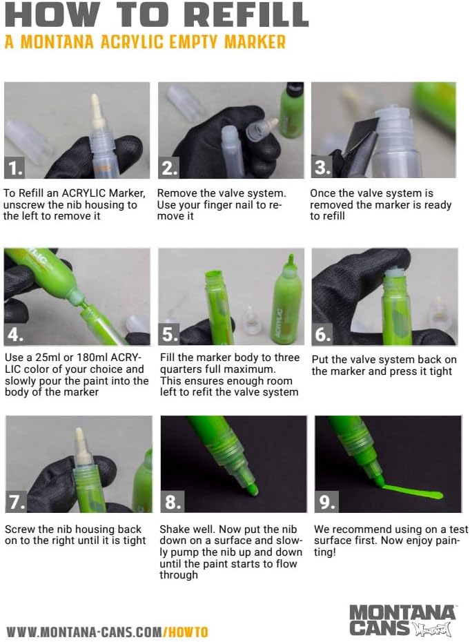 Montana acrylic markers feature. Water-based brilliant pigmented, acrylic matte colors that are compatible with and match the colors that are available in the Montana gold spray paint range.