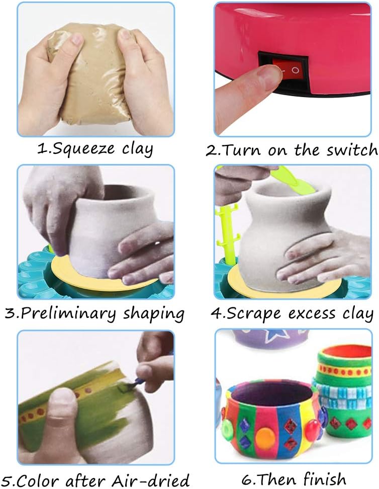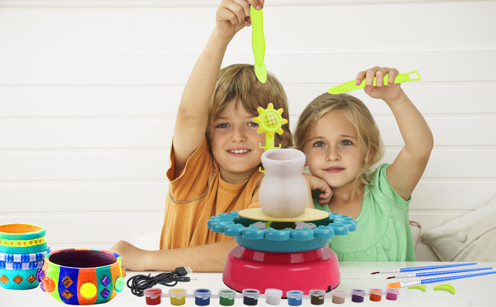 Educational Toy, Kids can make their own creative clay pots by hands. Also it requires 4 batteries -not included, and also include a USB Line.