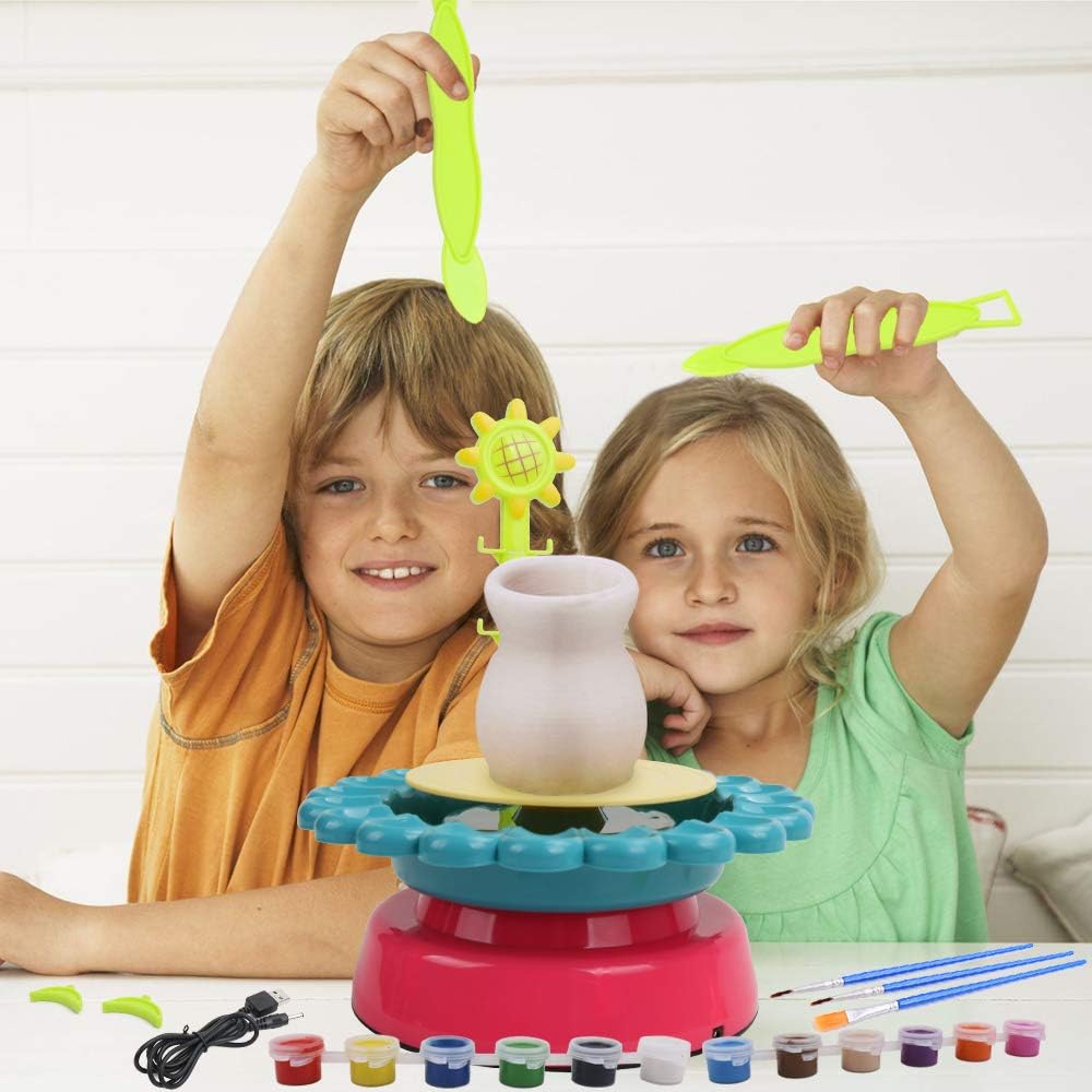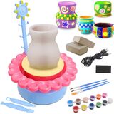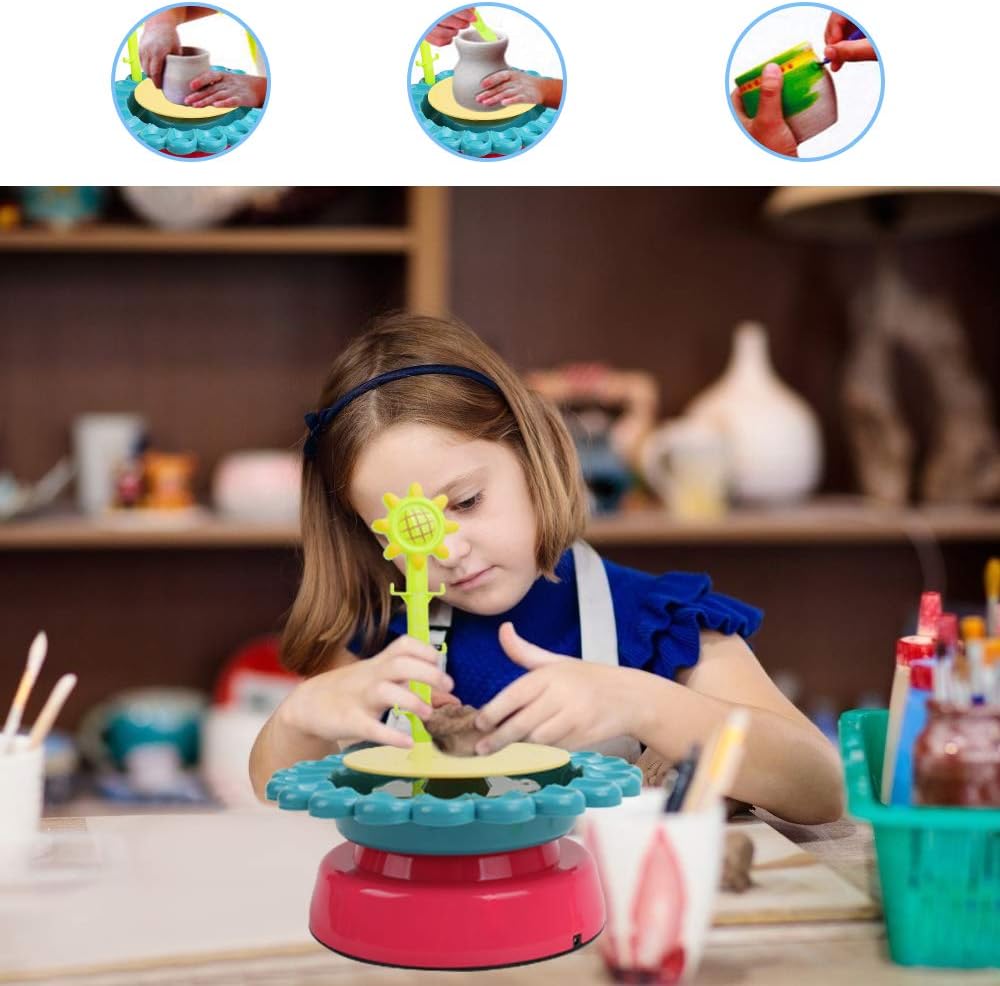 IAMGlobal Pottery Wheel, Sunflower Art Craft Kit, DIY Pottery Studio, Craft Activity, Artist Studio, Ceramic Machine with Air-Dry Clay, Educational Toy for Kids Beginners (Pink)
