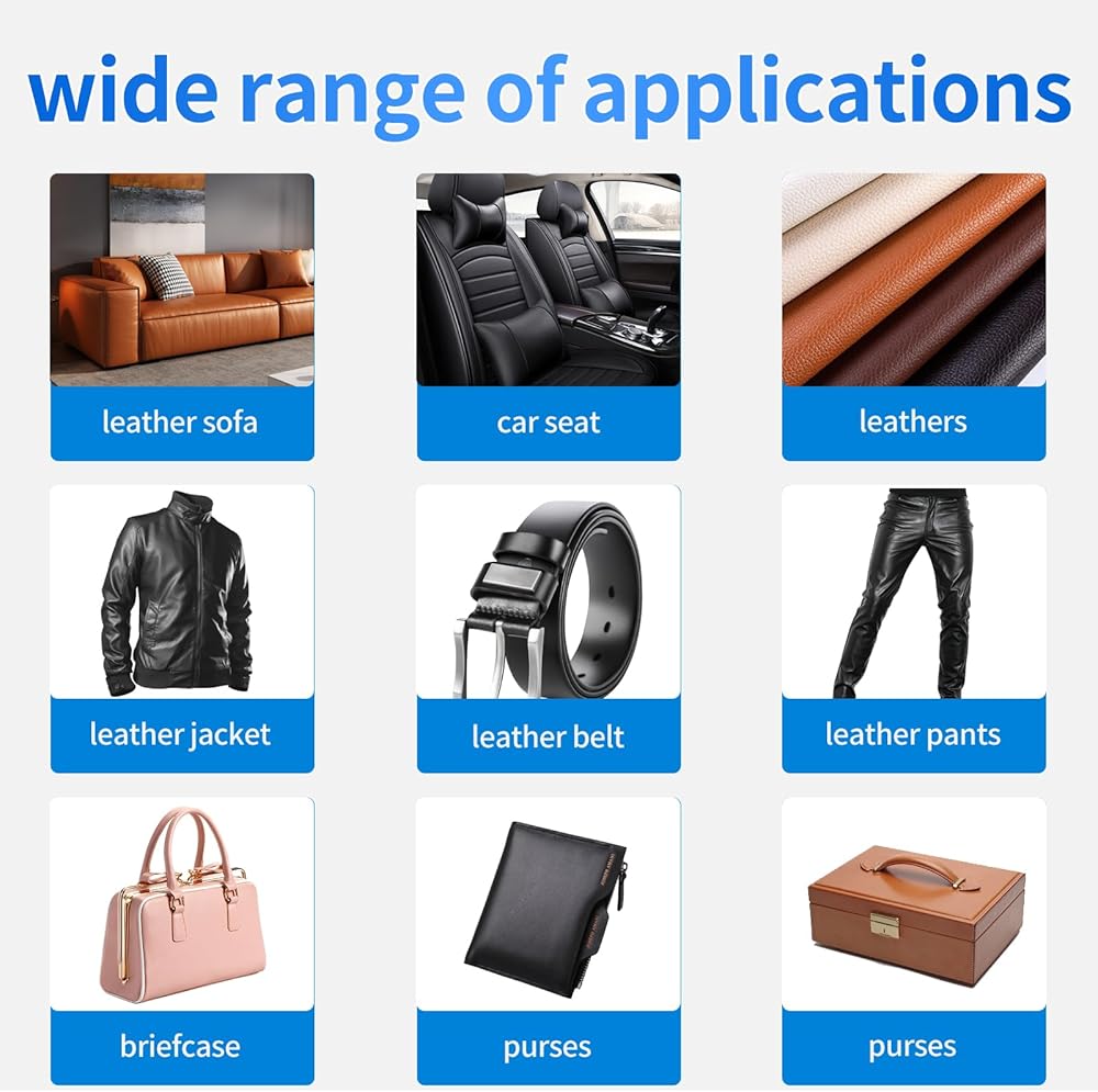 Scope of application: Suitable for all types of leather, cowhide, deerskin, suede, rubber, neoprene, canvas and so on. Commonly used in furniture, car seats, leather boots, bags, belts, sofas, clothes, pants and so on. The glue can also be used for DIY personalization of their own leather goods paste rhinestones, jewelry and so on!