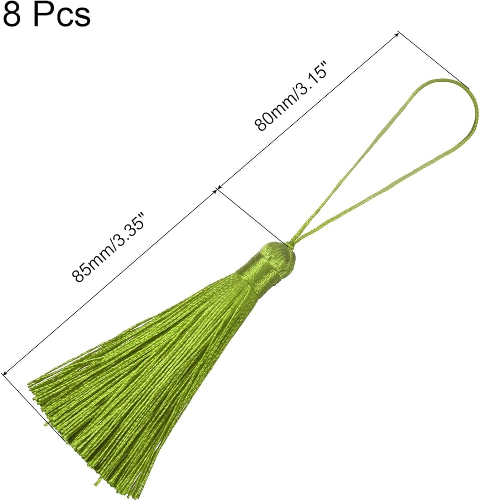 [Bookmark Tassels] - Total Size: 165mm x 10mm/6.5" x 0.39"(L*W); Tassel length: 85mm/3.35"; Loop Length: 80mm/3.15"; Color: Grey; Package Included: 8Pcs x Bookmark Tassels.