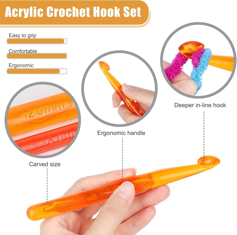 Katech 9pcs Acrylic Crochet Hook Set, Crystallites Acrylic Crochet Hooks with Ergonomic Handles for Arthritic Handles, 3mm-12mm Crochet Hook Extra Deeper Crochet Needle for Beginners Crocheting Yarn