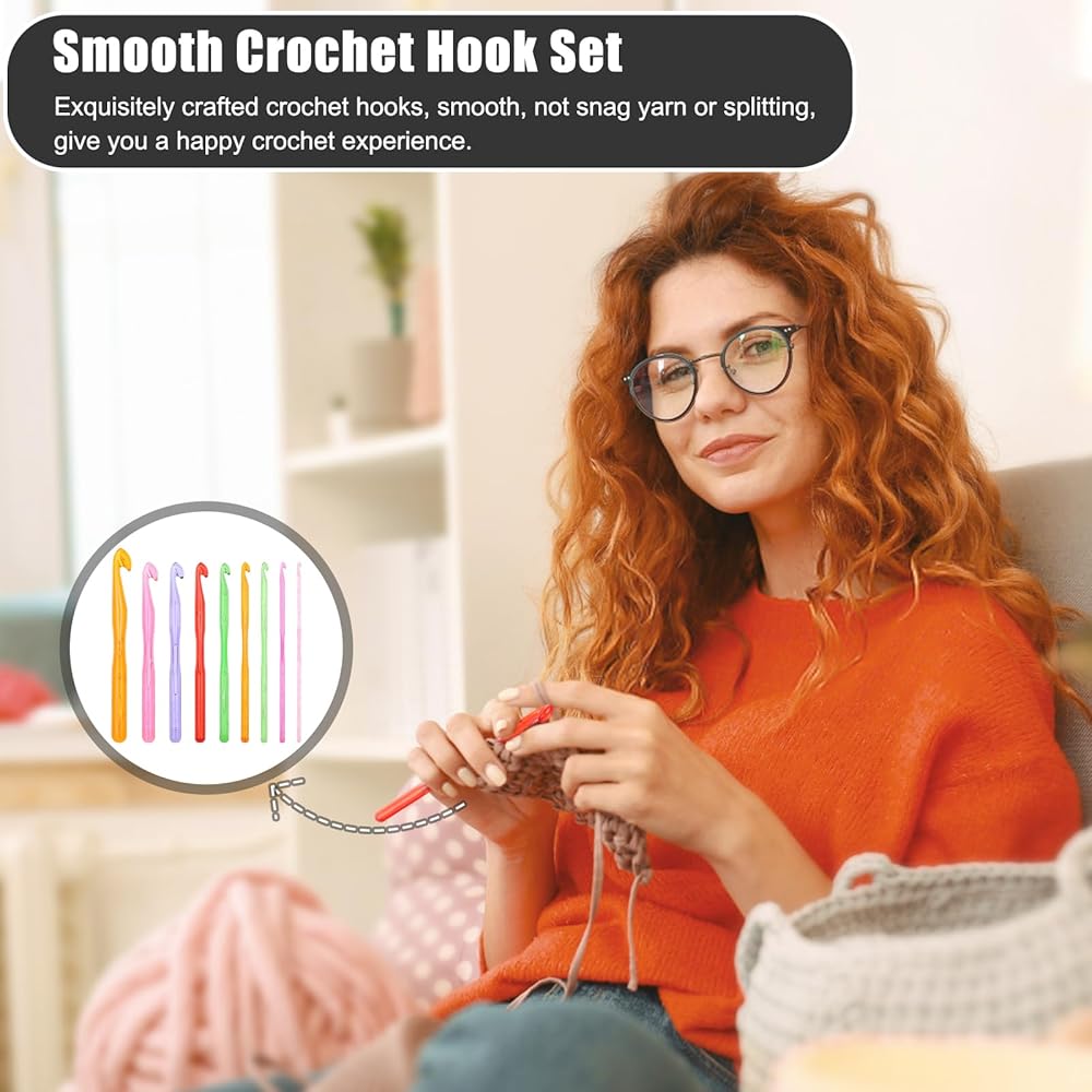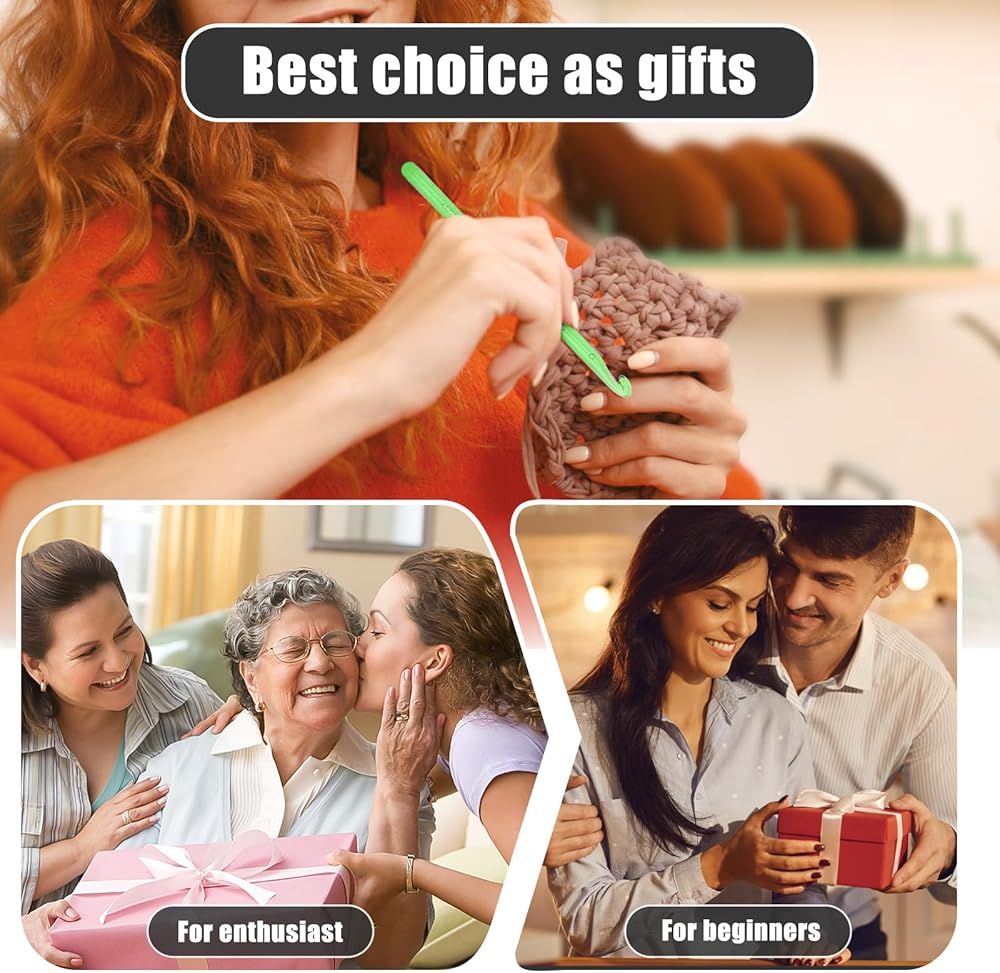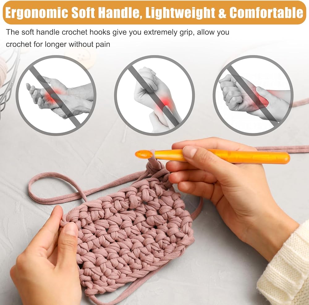 The crochet hooks set ergonomic grip can be effective in reducing wrist pain, suitable for beginners, arthritic hands and crocheters who need to use plastic crochet needles kit for a long time.
