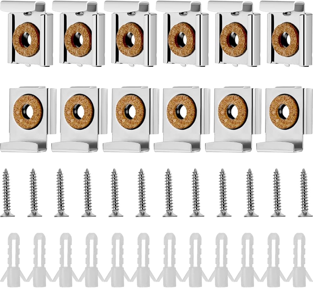 Package you can get: there are 4 sets provided for you, each set include 4 pieces mirror mounting clips, 4 pieces screws and 4 pieces expansion screws, a total of 48 pieces, large quantity provide for you to use