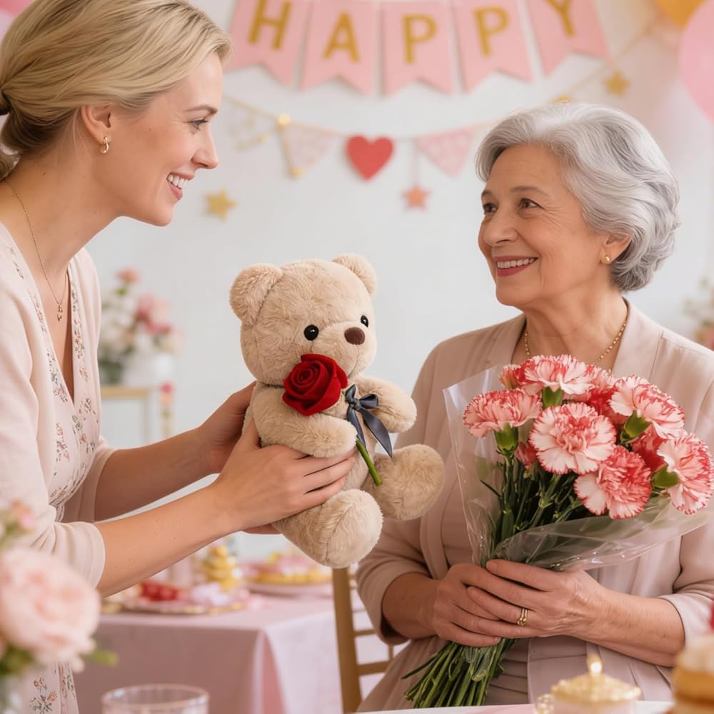 Teddy Bear Plush, 9 Inch Cute Brown Teddy Bear Stuffed Animals with Rose, Mothers Day Stuffed Animal for Mom, Kawaii Stuffed Bear Gifts for Mom Girlfriend Boyfriend