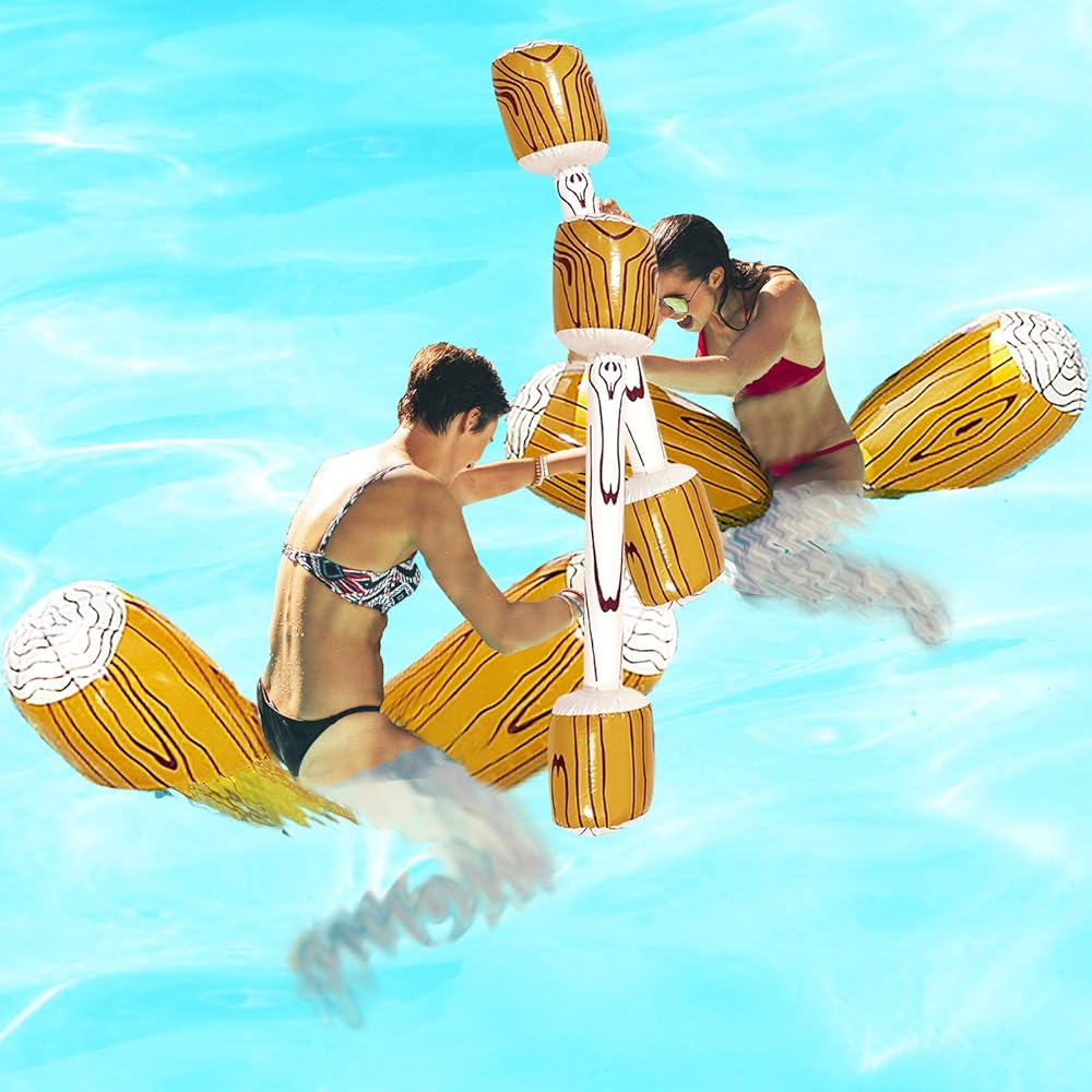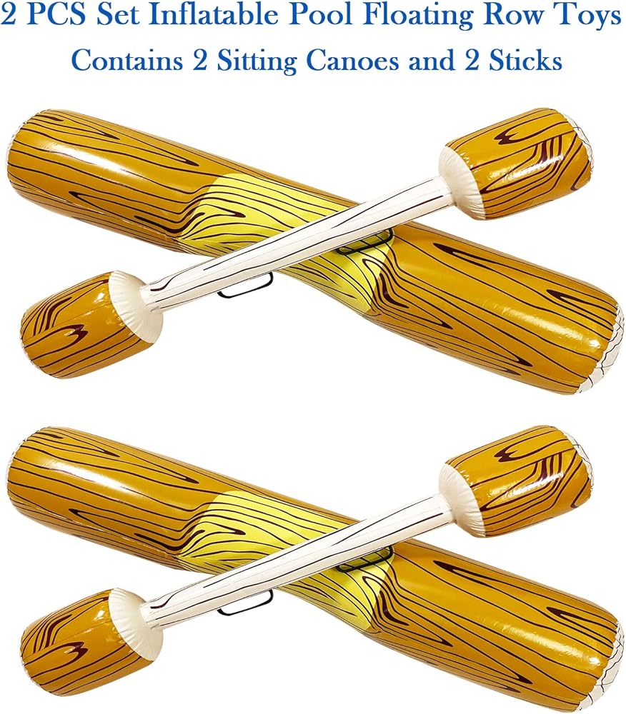 ALLADINBOX 4 PCS Inflatable Pool Battle Log Rafts, Float Row Toys for 2 Players Fighting Float Ride On, 2 Sitting Canoes and 2 Sticks, Joust Set Pool Party Water Sports Games, Wood Grain